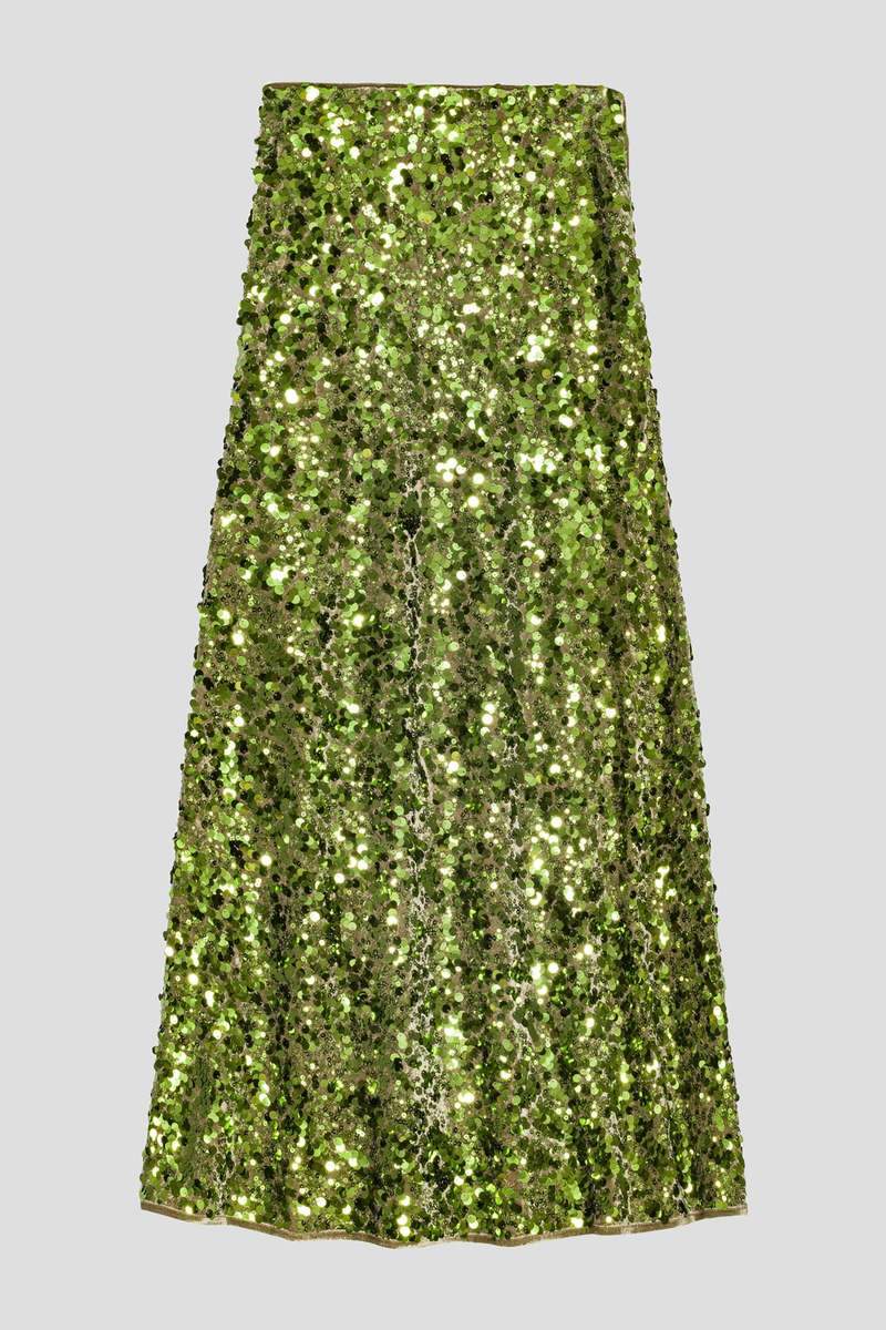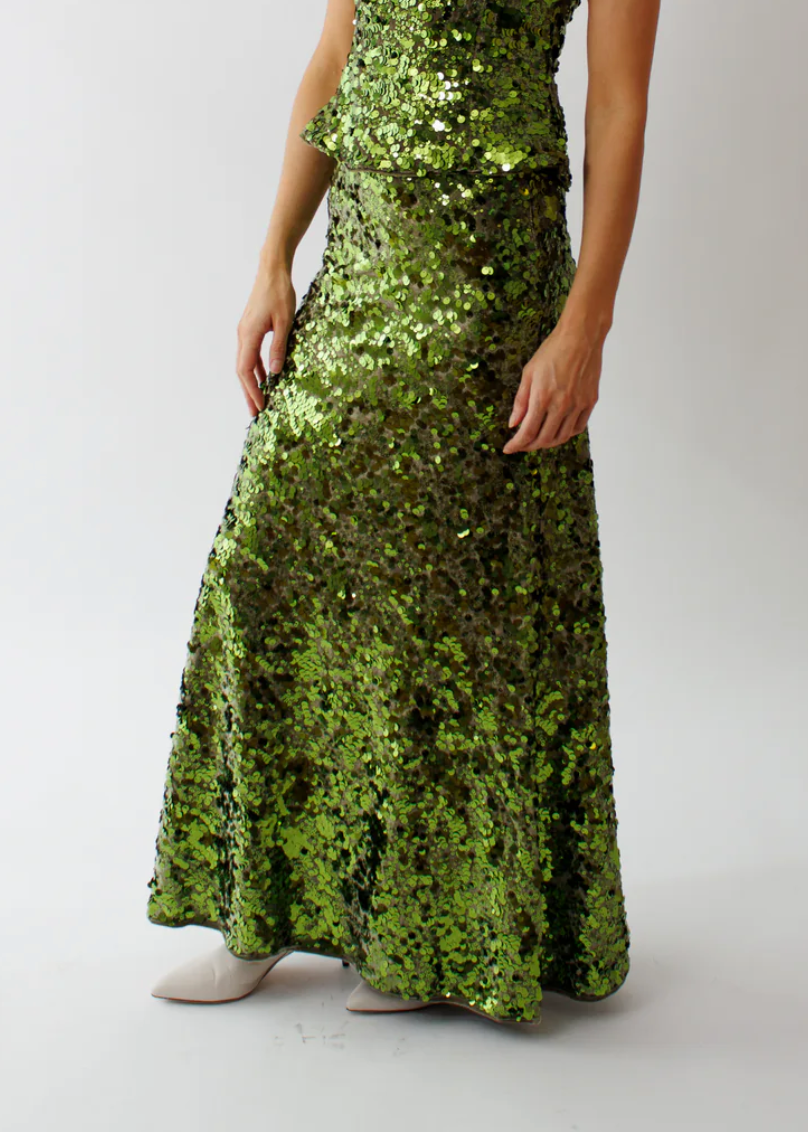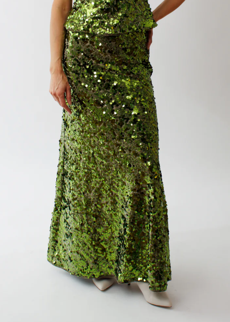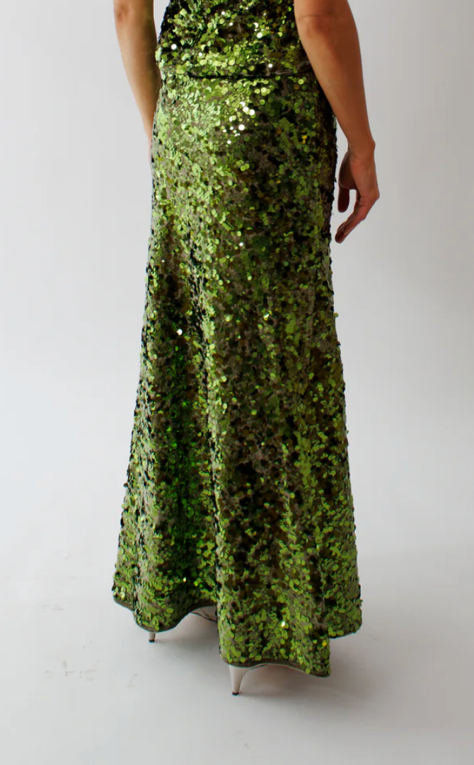 Green Sequins Maxi Skirt