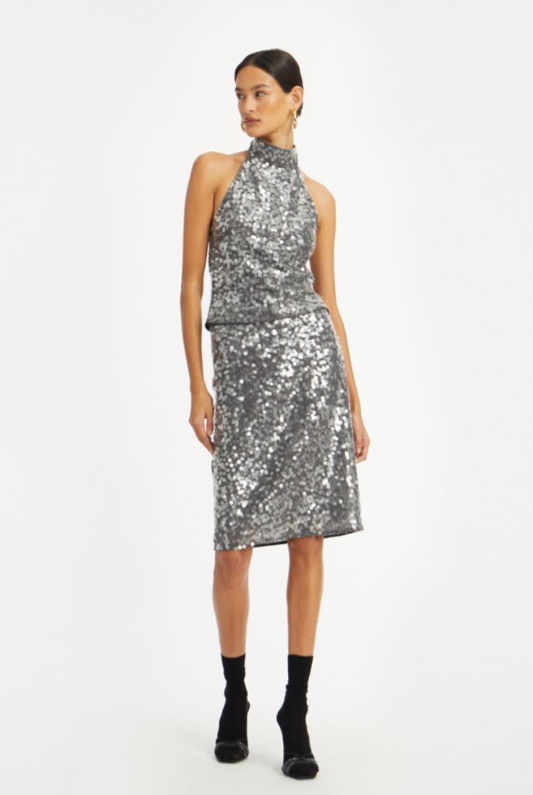 Net Sequin Halterneck