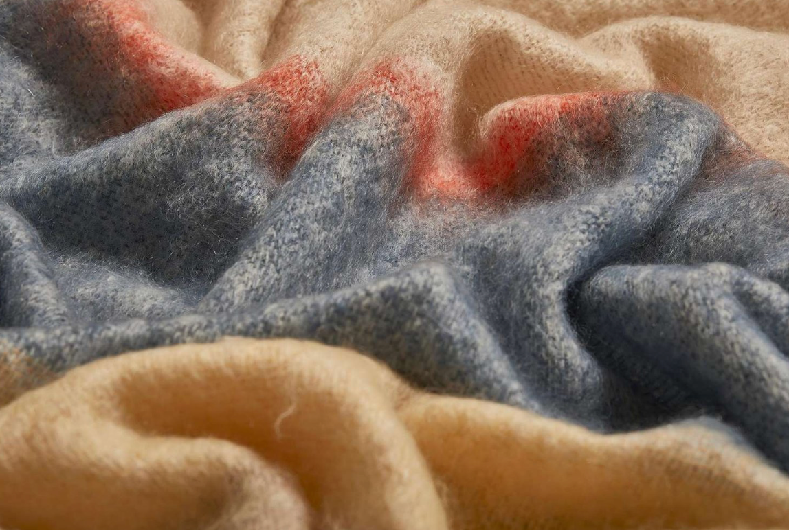 This elegant contemporary brushed mohair throw blanket is crafted from luxurious Mohair wool, sourced from Italy. The throw is delicately hank dyed in a custom colour palette and hand finished by our team of highly skilled makers. The throw is available in a variety of sizes and is the perfect addition to any living or bedroom space.