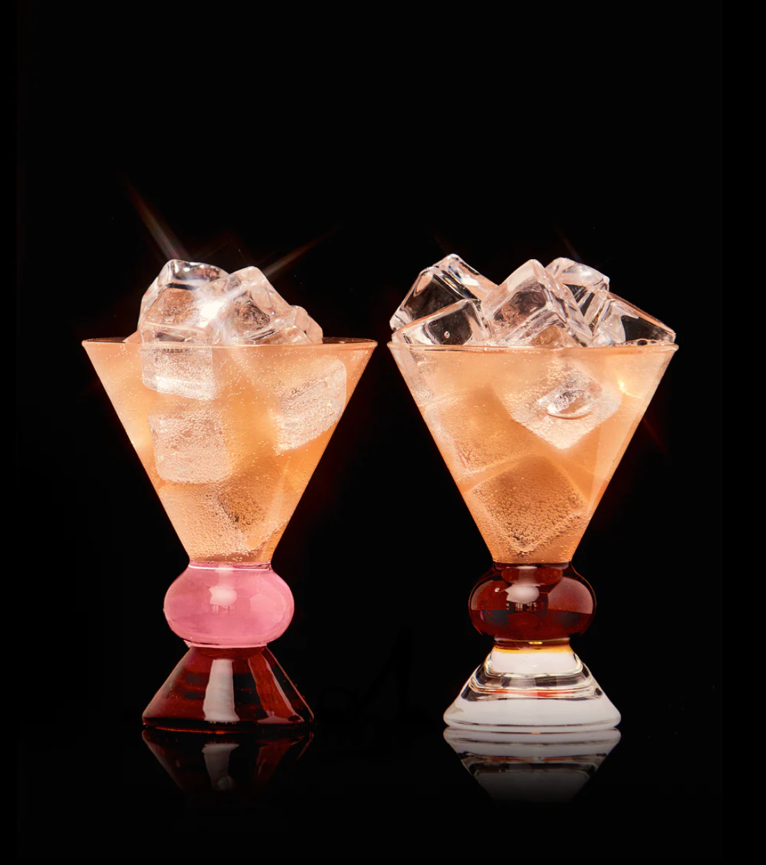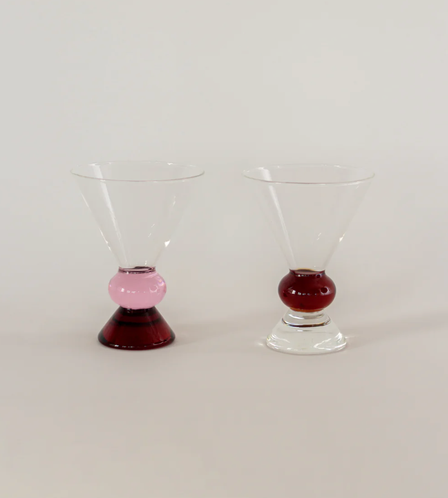 Inspired by the colorful totem poles of postmodern design, the solid base and proportions of these stemless cocktail glasses were designed with special consideration for longer drinks — spritzes, mixers, even sodas! — but still work beautifully with any classic cocktail.