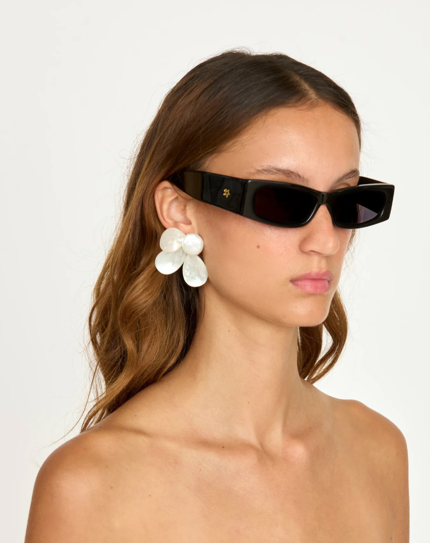 A sculptural statement inspired by flower petals and organic forms. Each oversized clip-on earring is hand-assembled from petal-like shell pieces and anchored by a luminous baroque pearl at the center. Slight variations in shape and sheen make every pair subtly one of a kind. Hand-strung in Miami by our team of female artisans.