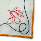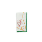 Ready to party? Whether you’re gathering around a big table, bistro set or picnic blanket, 100-percent-linen napkins make any setting feel sophisticated. Mix the embroidered grapes, pear, peas and olives—all in complementary primary hues and with contrasting picot edging—for a lively look that sets the mood for fun.
