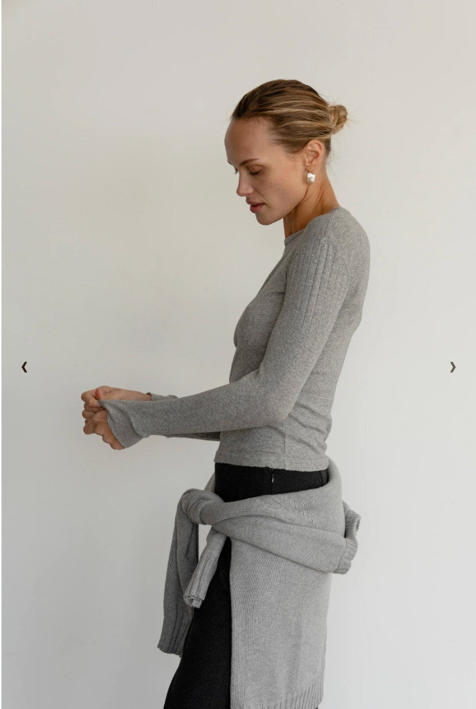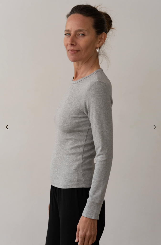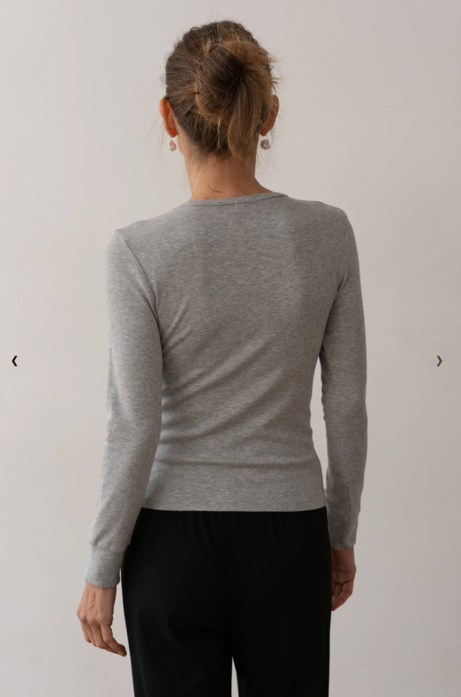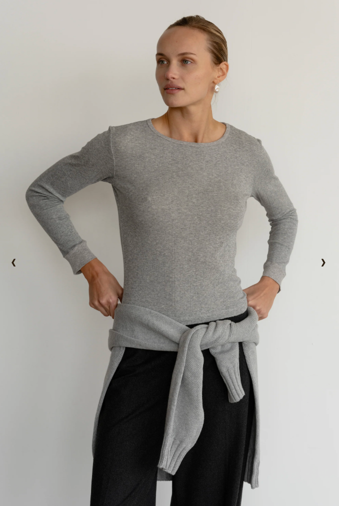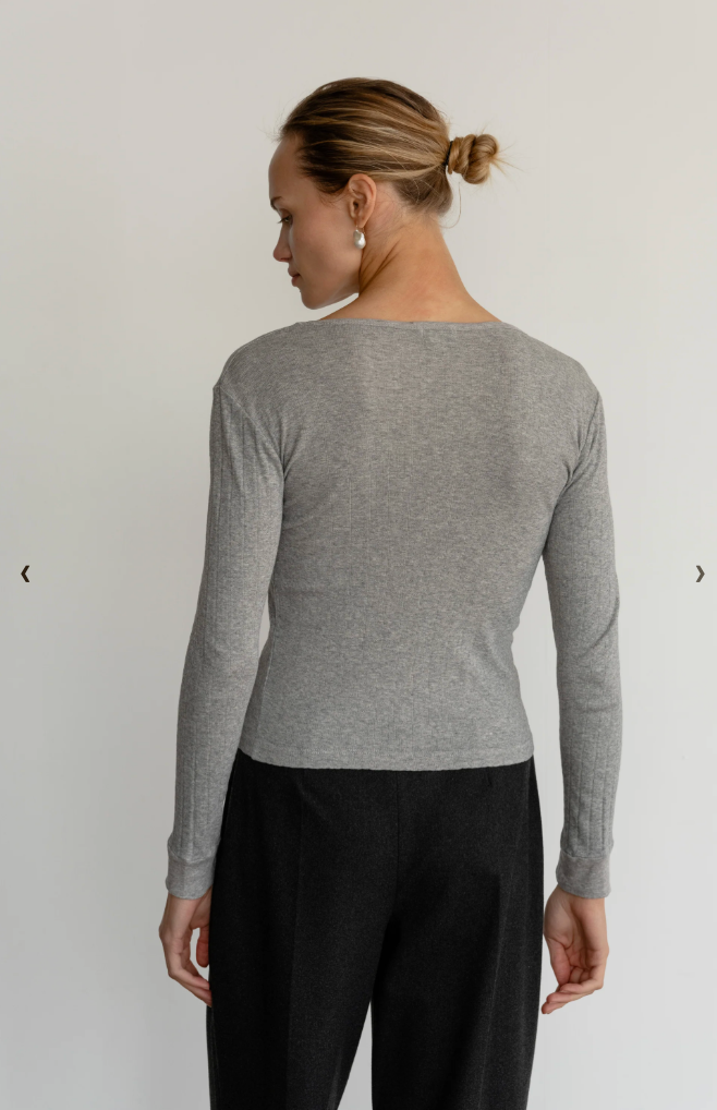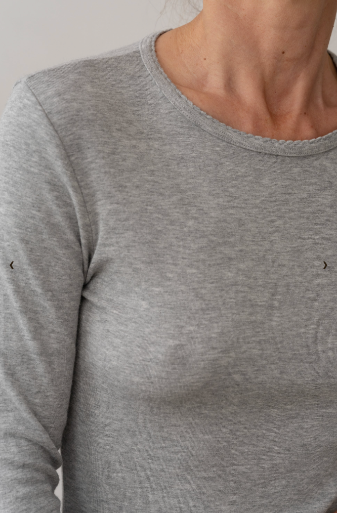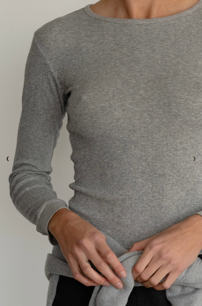 Baby Rib Scallop Long Sleeve in Heather Grey