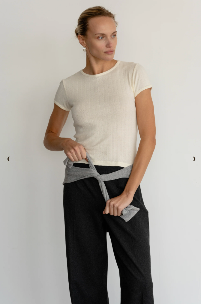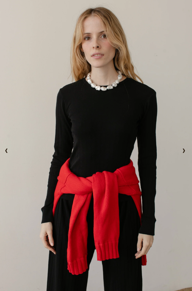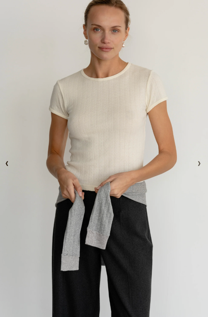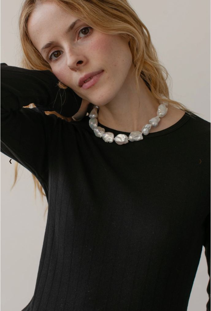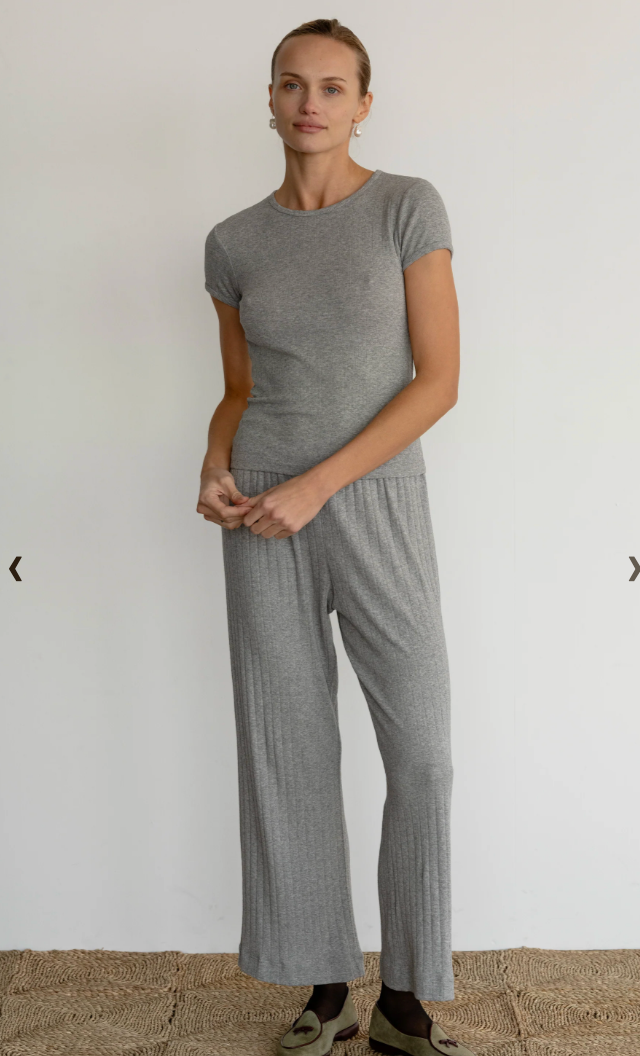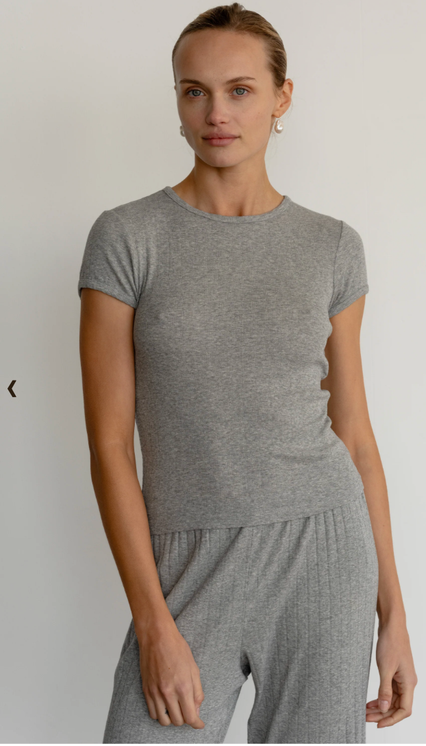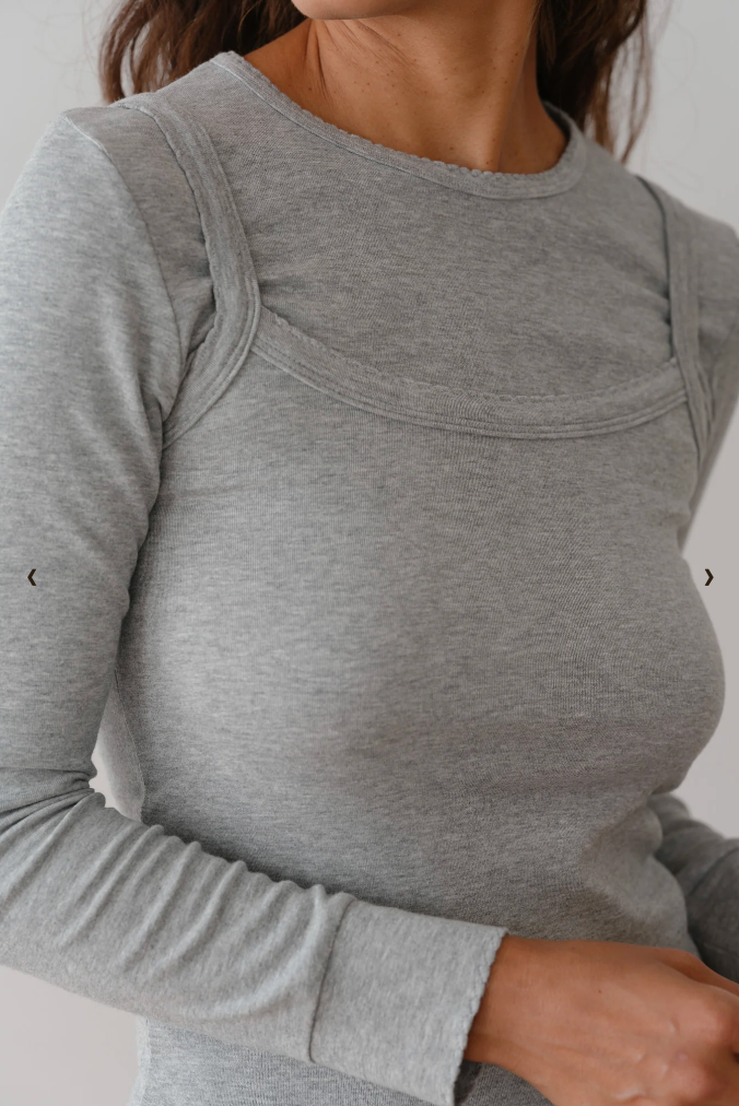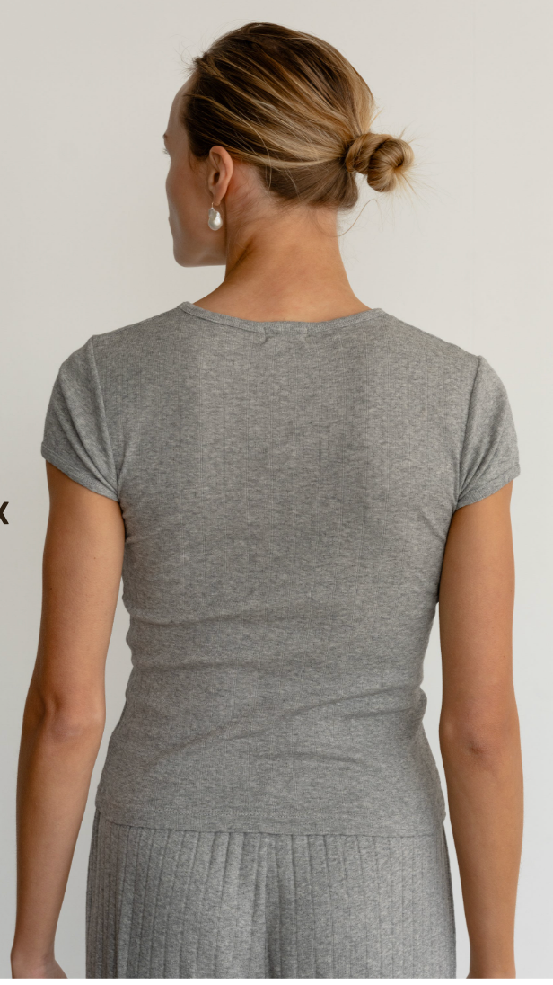 Baby Rib Scallop Long Sleeve in Heather Grey