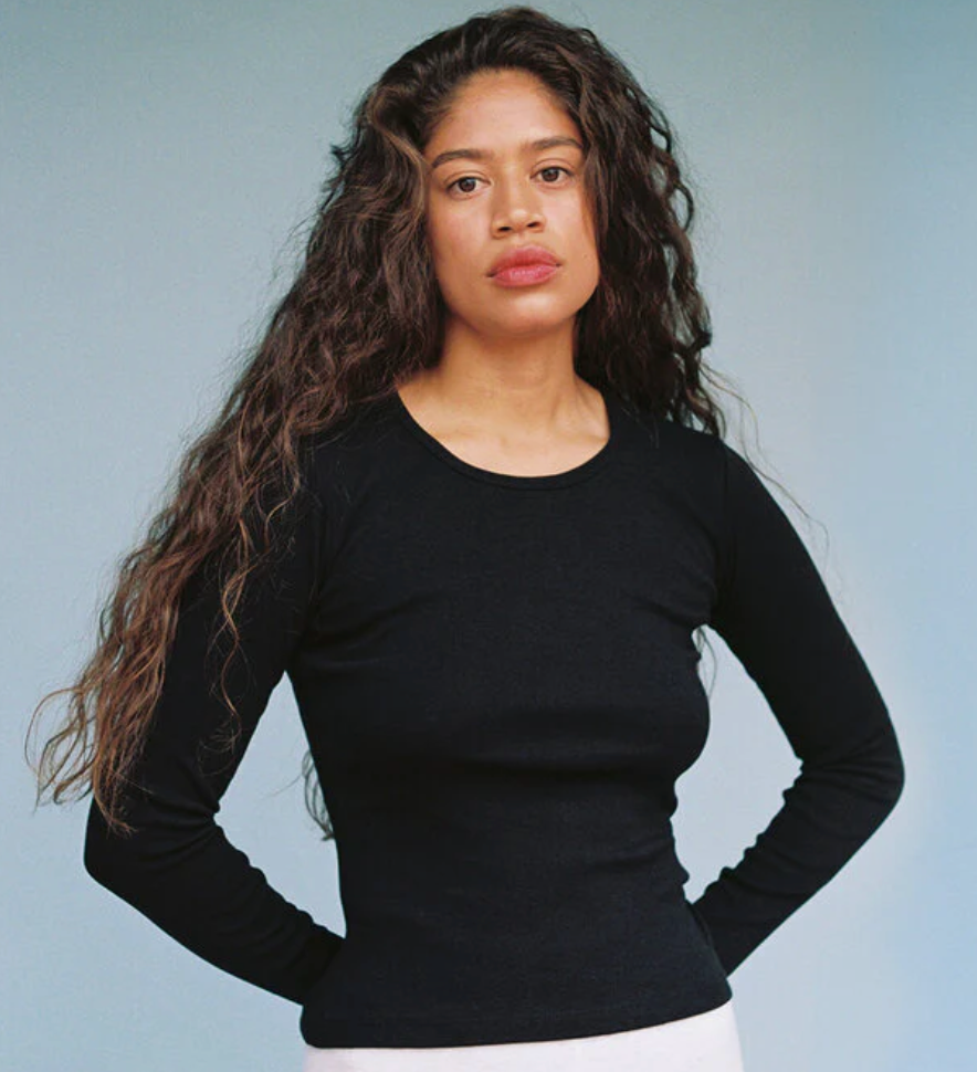 A classic long-sleeve tee made from super soft cotton baby rib. Flattering and form-fitting, it’s the perfect length to tuck into a high waist, or not. Made in USA from custom knit, locally sourced materials.