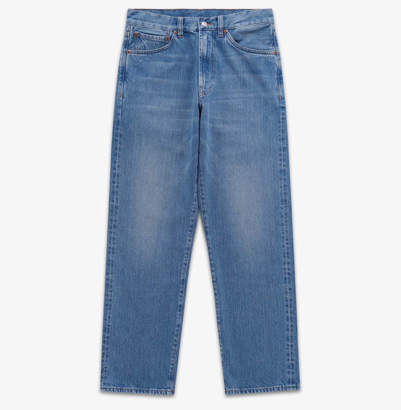 The K102 Jean has a mid to high rise, with a fuller thigh and a straight leg cut. The cut is reminiscent of some of our favorite 5-pocket fits of the ‘50s and ‘60s, with much of the stitching and detailing we appreciate in vintage denim.