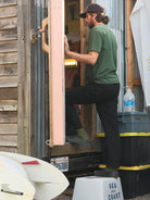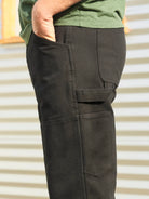 Built for work. These utility pants are made from canvas that is heavy enough for rugged wear, but surprisingly soft and pliable. They feature a double panel in the front, plenty of pockets, and a hammer loop. Trevor is 6' 2" tall and wearing size L.