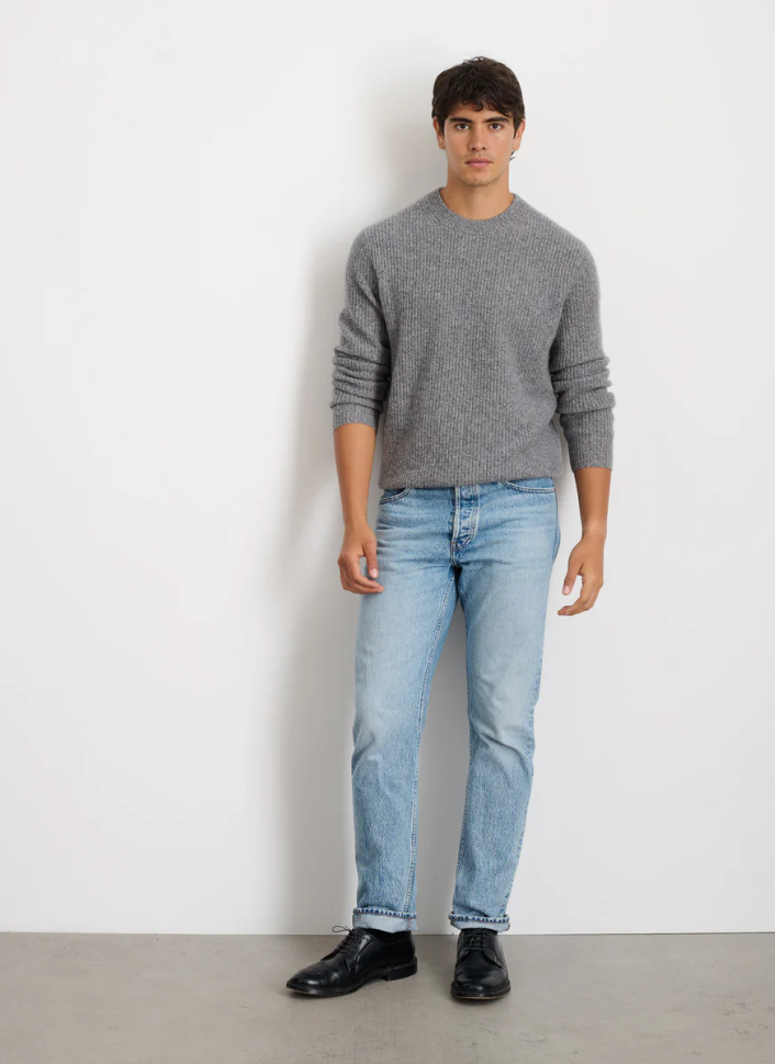 Reintroducing our first 100% cashmere sweater. It’s washed and brushed to be extra-soft and we used 2-ply 7 gauge cashmere which is a fancy way of saying it has an incredible weight and texture.