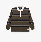 Named after one of our neighborhood parks in Brooklyn, the McCarren Rugby is a classic piece of sportswear. This hard wearing rugby offers simple, timeless style with just the right amount of pop from a bold yet subtle yarn-dyed stripe designs. The knit is made with long staple, dual ring-spun and combed cotton yarn. This yarn quality provides both incredible softness and great durability. Expect a tightly knitted construction and a garment that drapes with a more boxy silhouette. We have finished the collar and placket with a cotton twill that has melamine buttons, which are military spec buttons made to match the tough-wearing nature of this garment.