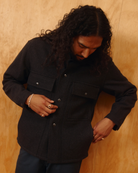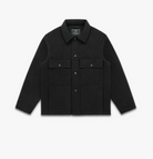 This Mott Jacket is cut from a tightly woven wool and cashmere blend cloth. An outdoorsman-inspired silhouette designed to serve as a durable and warm layer for the winter months. Features a snap-button front and three exterior patch pockets for ample storage.