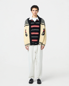 Bold contrast stripes along the sleeves and hem