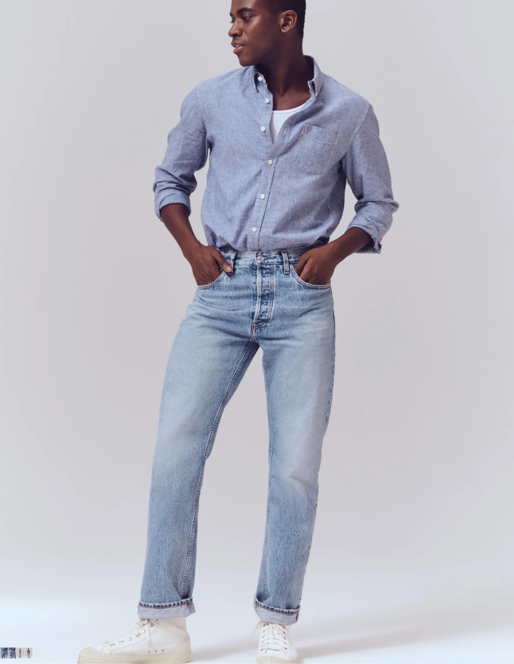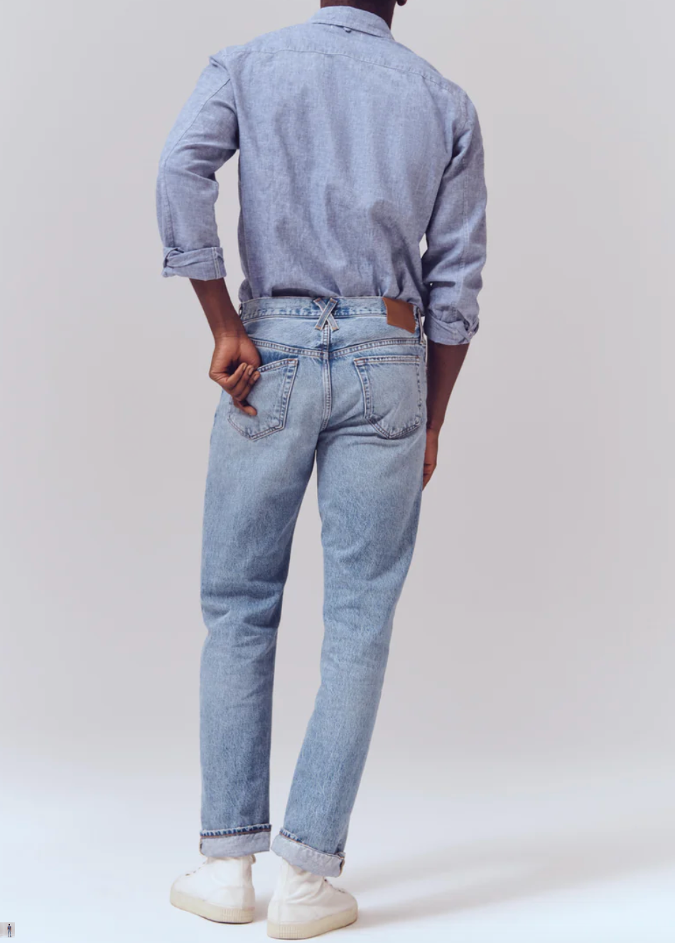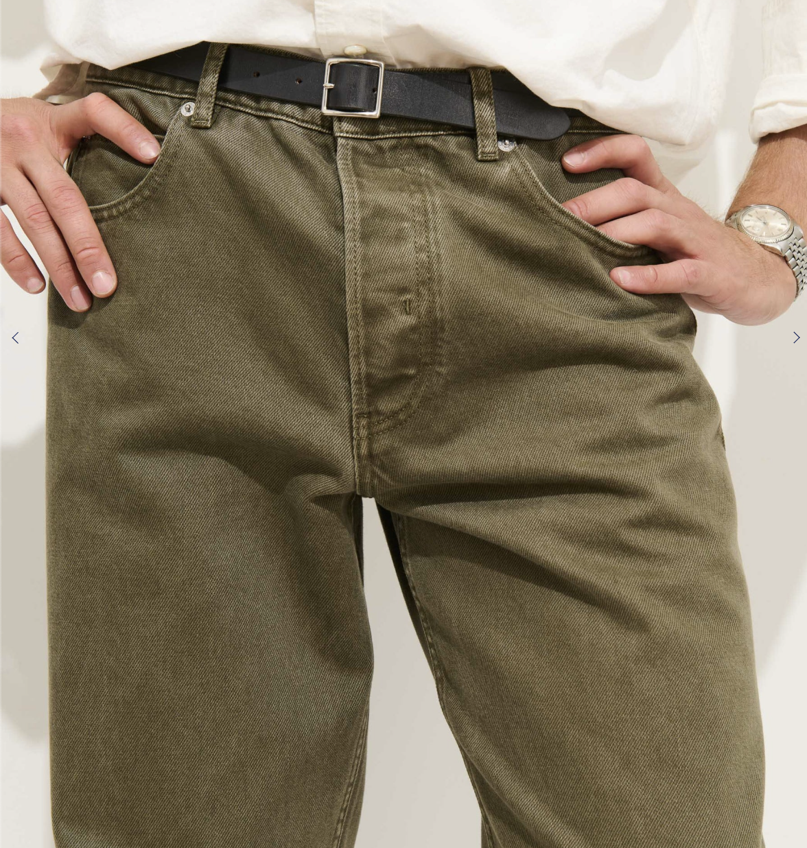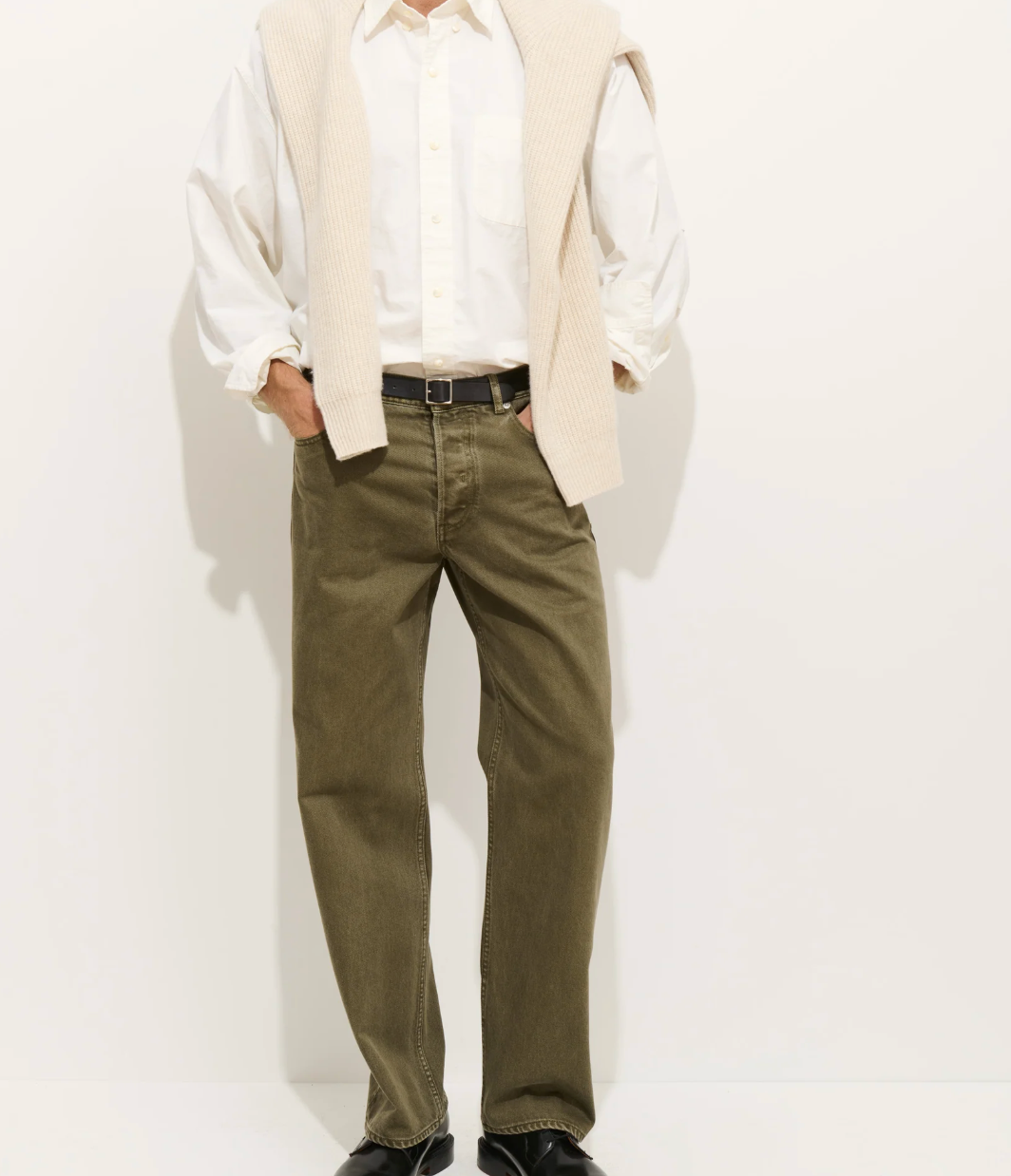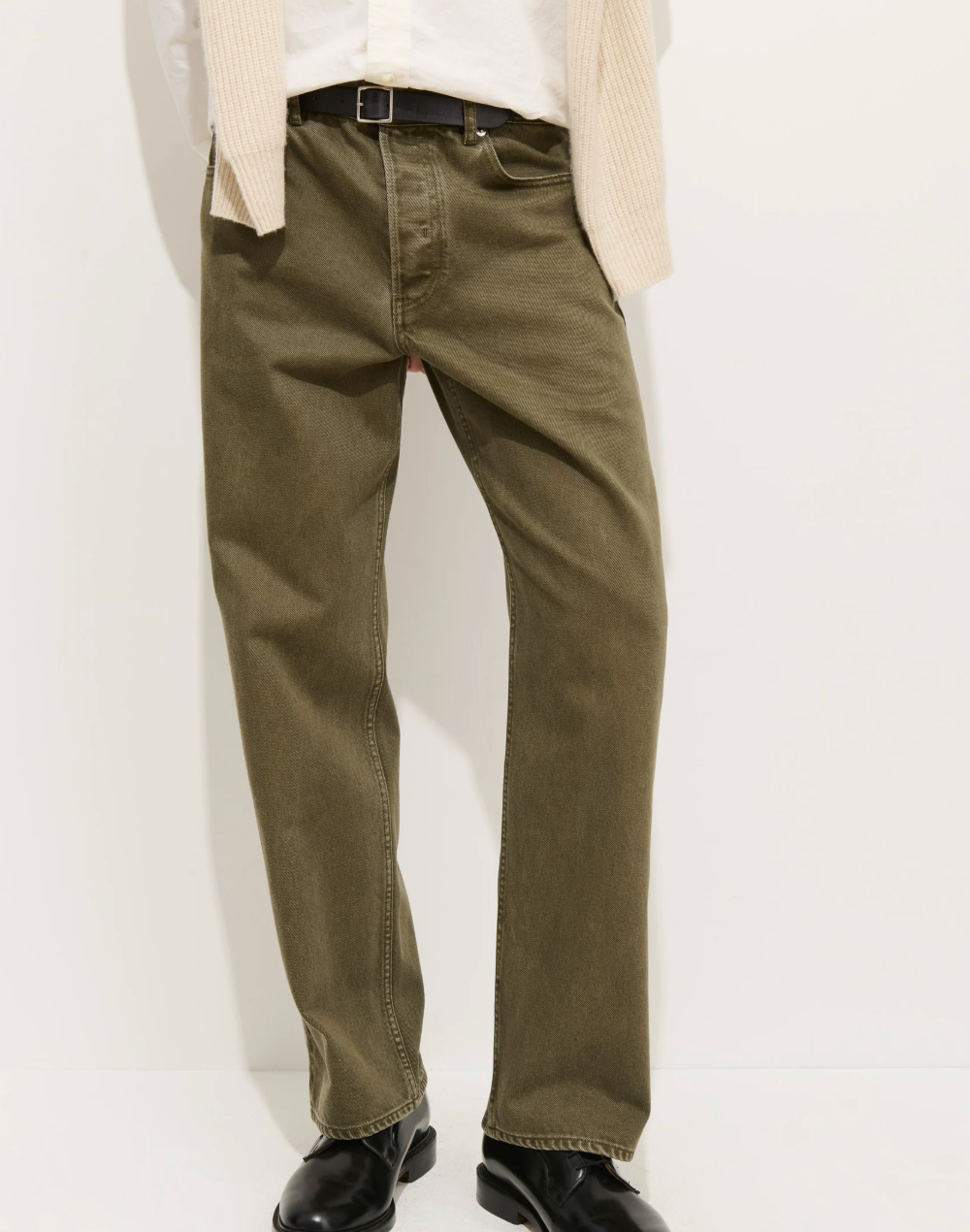 Relaxed Straight 5 Pocket Jean in Deep Olive
