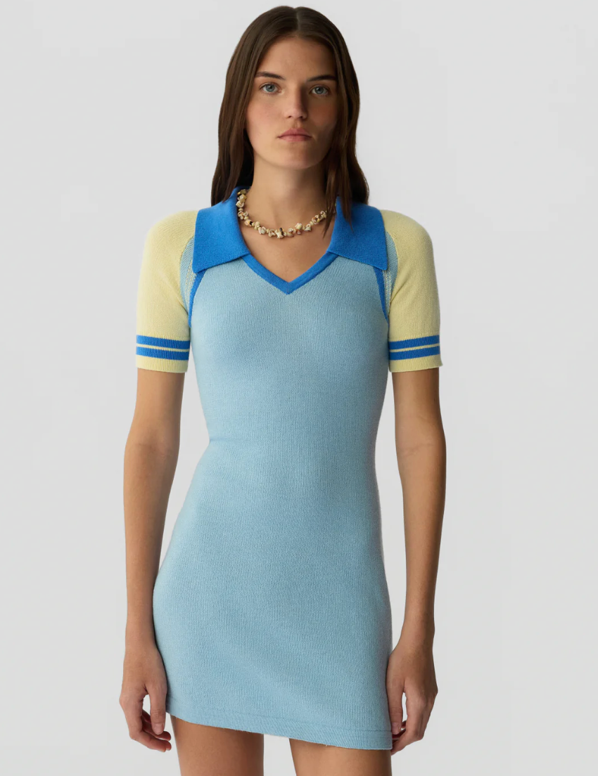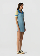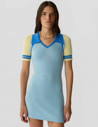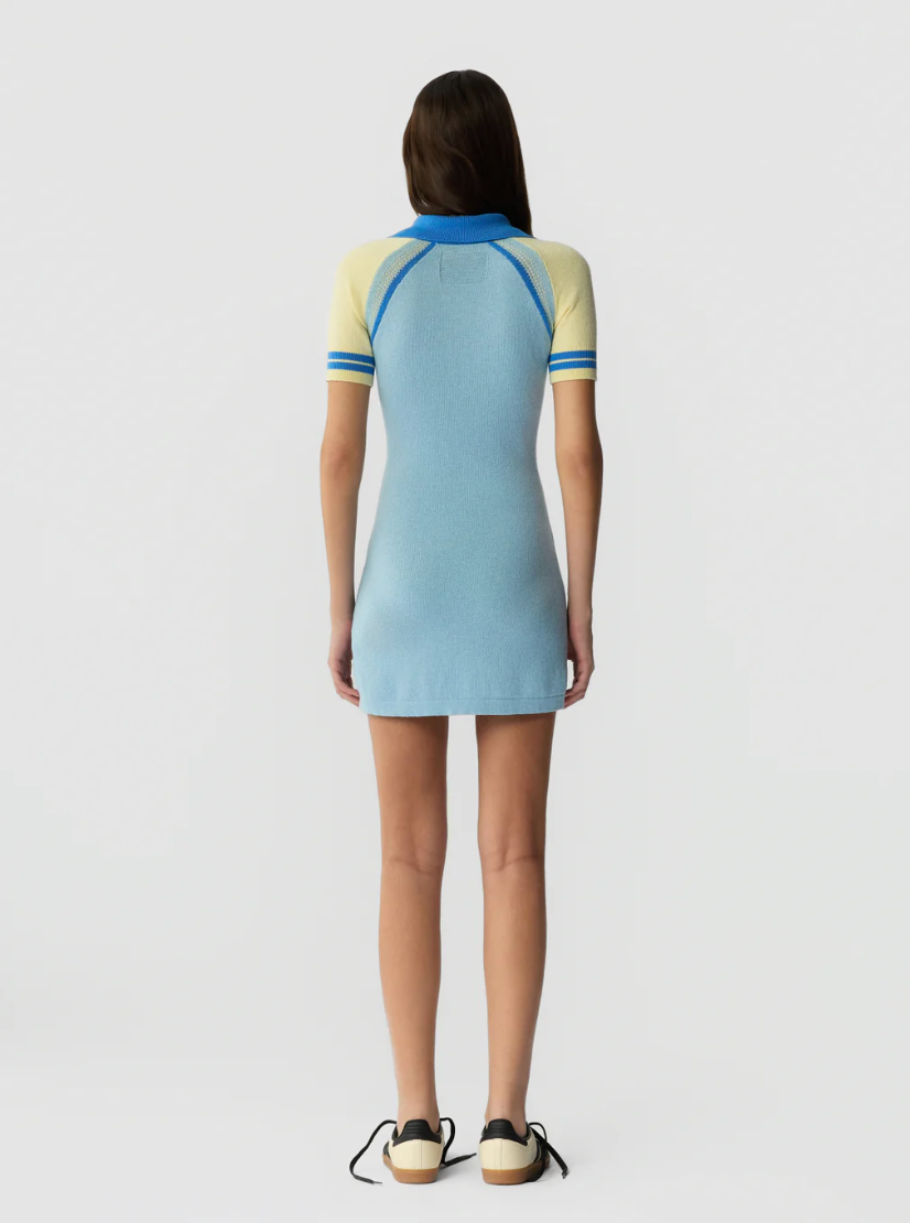 The Ace Polo Dress is a fitted women’s cotton–cashmere polo mini dress inspired by classic tennis style. Featuring contrast short sleeves, stripe detailing, and a V-neck polo collar, this light-weight summer knit dress offers polished, sporty appeal. Style it with sneakers for everyday wear, or sandals for warm-weather travel.