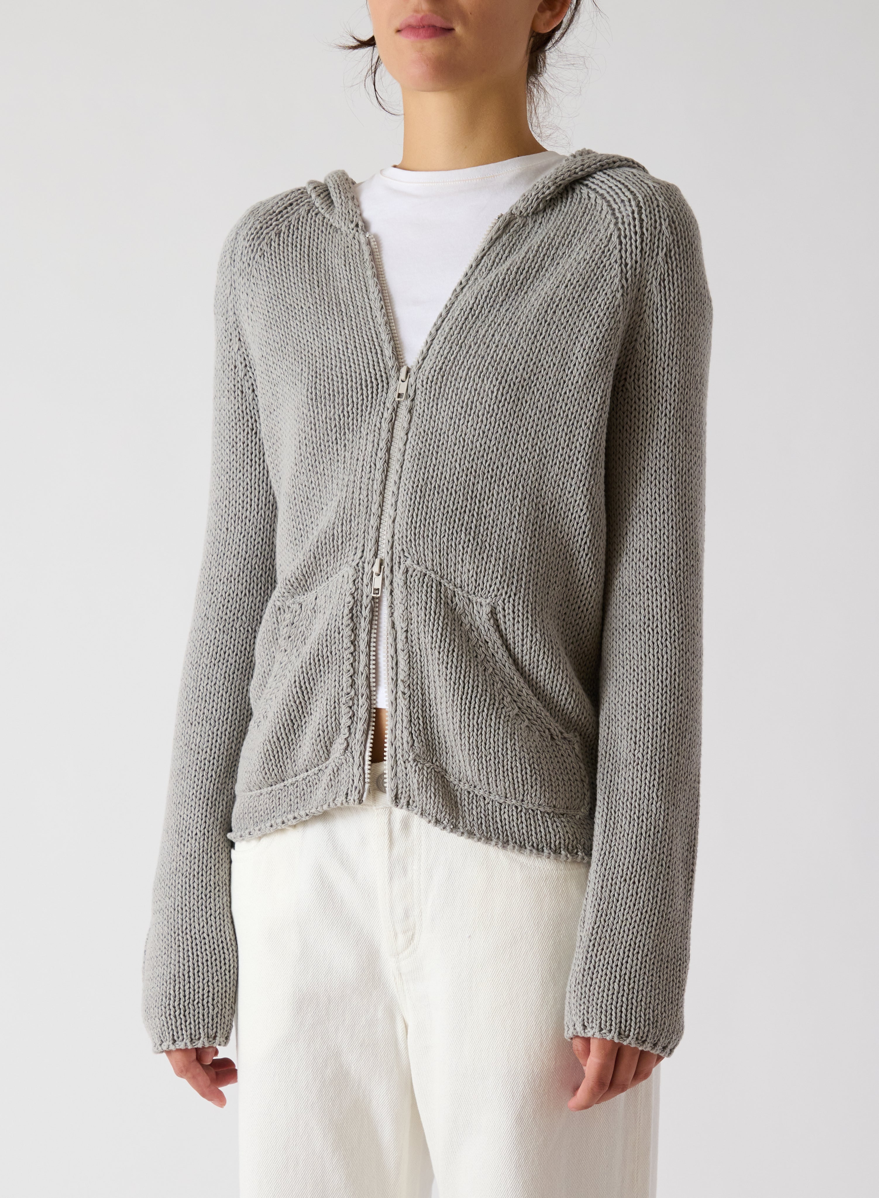 The Bear Zip Up is a cotton hooded zip up sweater featuring a two-way zipper and front hand pockets.