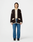 The Grizzly Jacket takes cues from shearling with a soft brushed cashmere finish and contrast trim. Mid-weight and endlessly wearable, it layers easily over knits or tees a statement piece for cooler days and nights out.