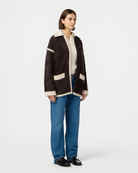 • Contrasting knitted shearling collar, cuffs, hem, and pocket detail