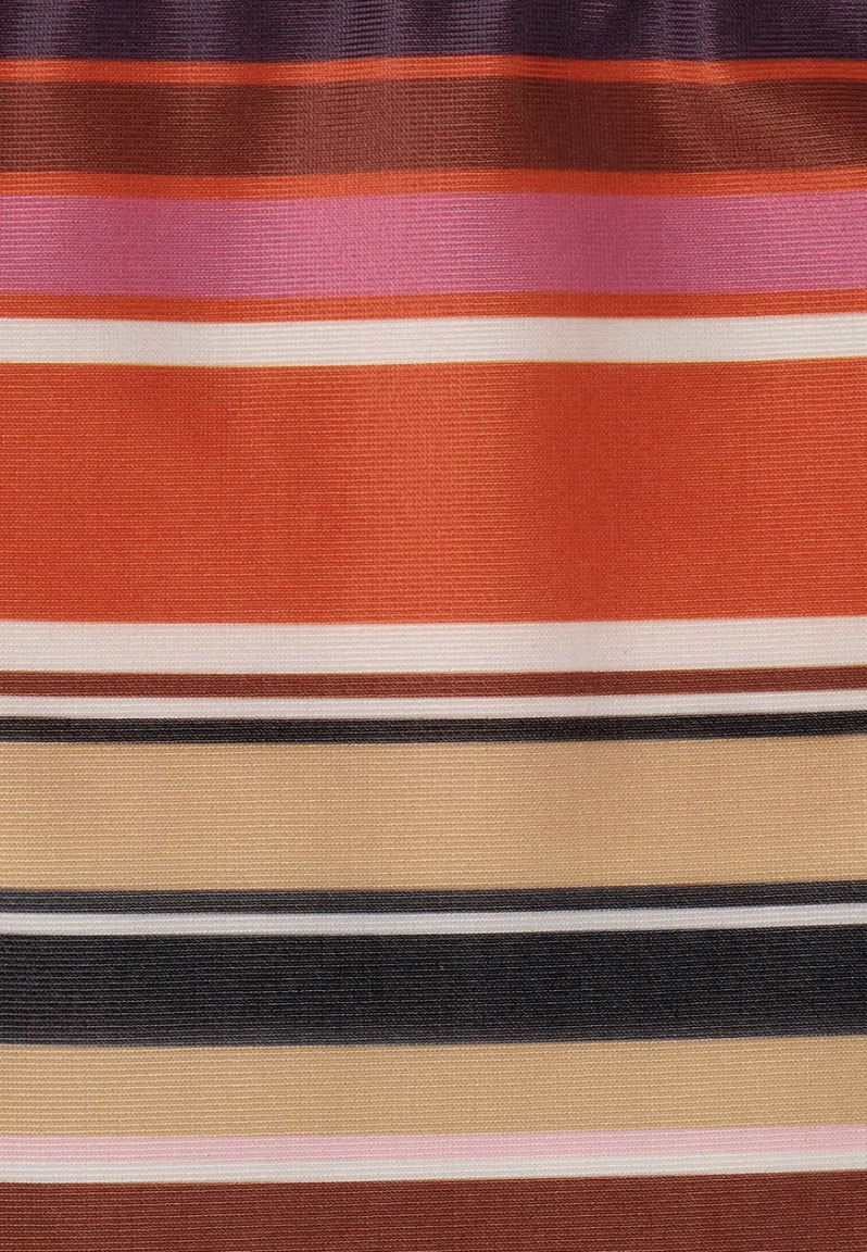 A retro-inspired triangle bikini bottom, designed from a 100% blend of recycled materials, including polyamide and elastane, in a vibrant multi-colour stripe, bringing in sunburnt tones of reds, pinks and yellows. Featuring adjustable side ties, as well as decorative resin beads, style with the matching Leone Bikini Top for an island escape.