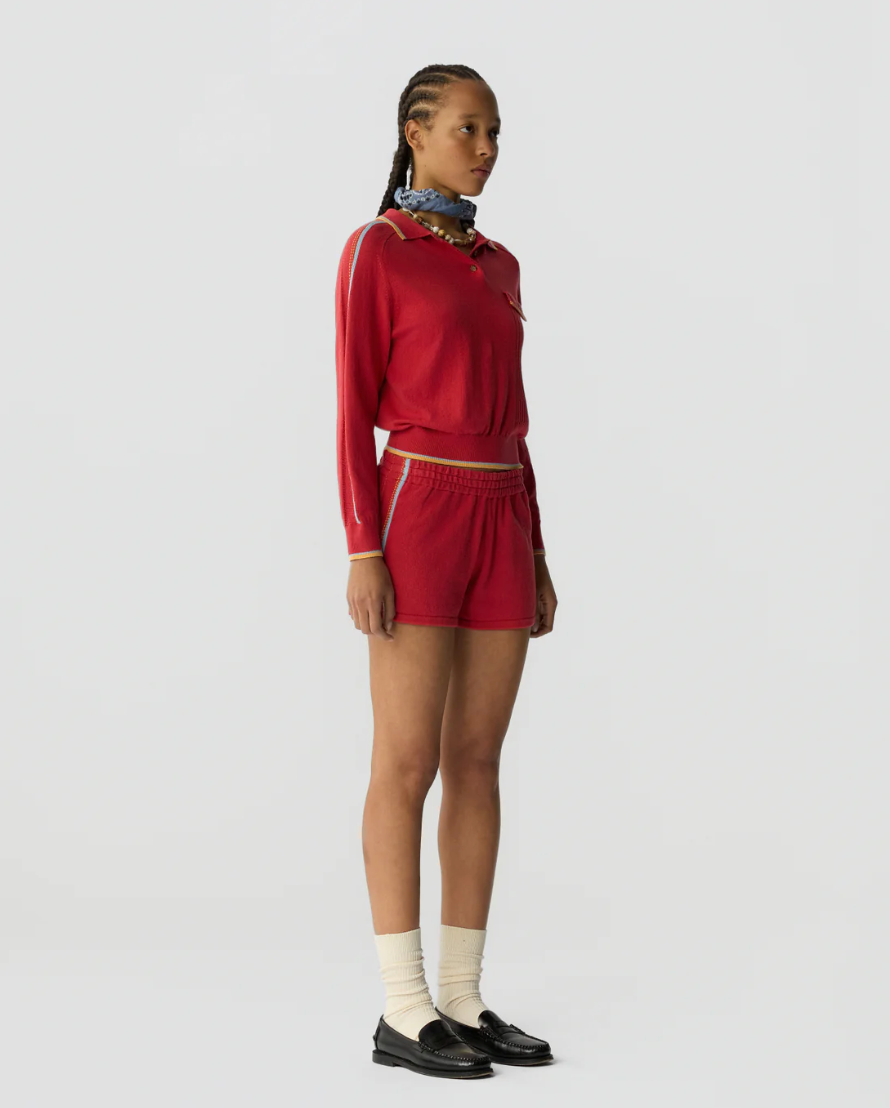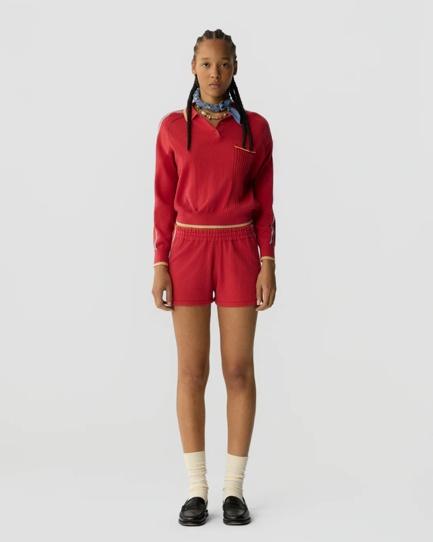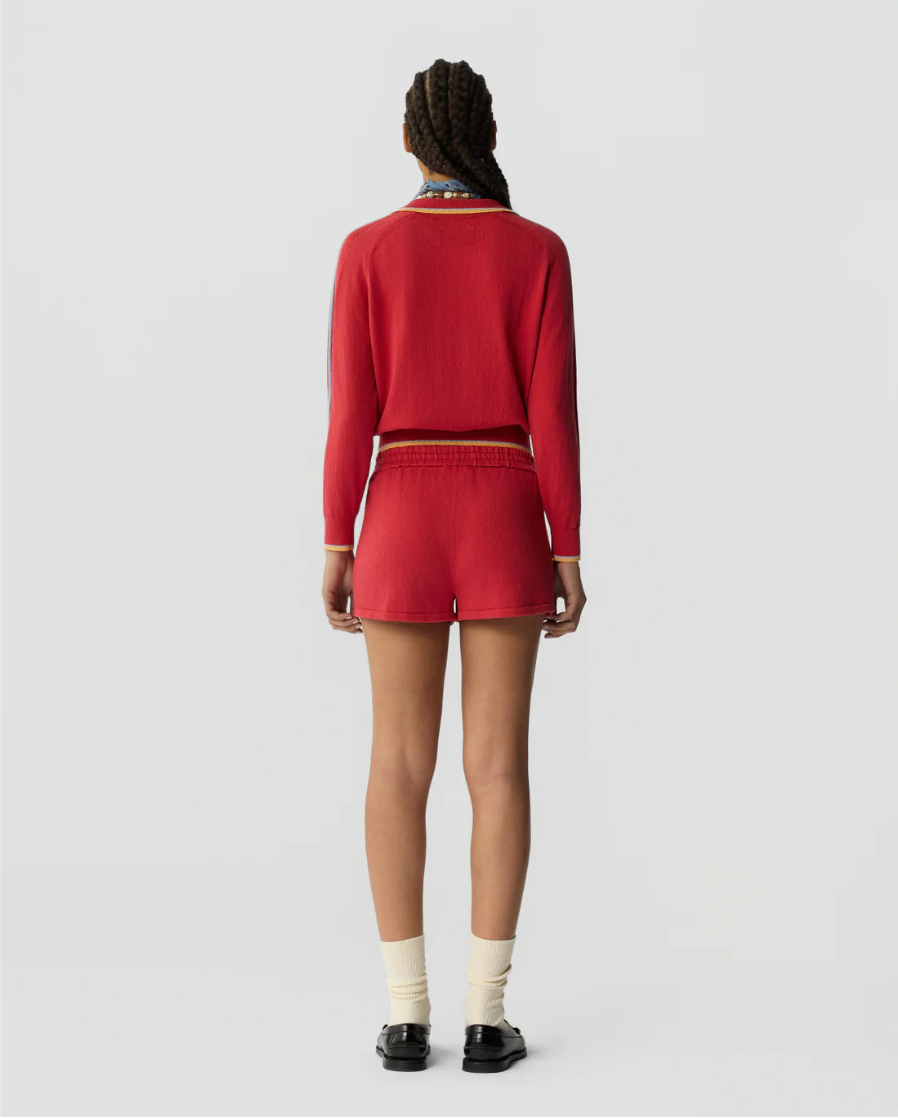 The Runner Short is a women’s light-weight cotton–cashmere knit short designed for comfort and movement. Featuring an elasticated waistband and athletic stripe detailing, these breathable shorts are perfect for lounging at home, travel days, or styled with the matching Relay Polo for an easy, coordinated set.