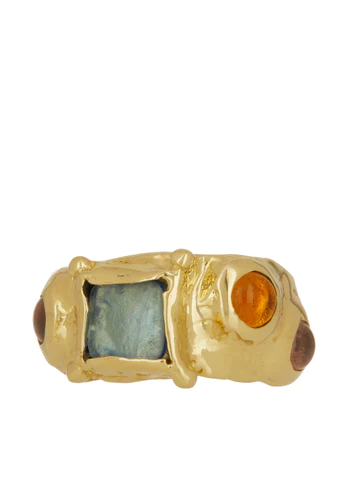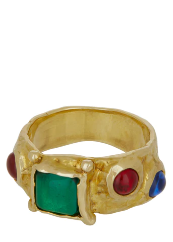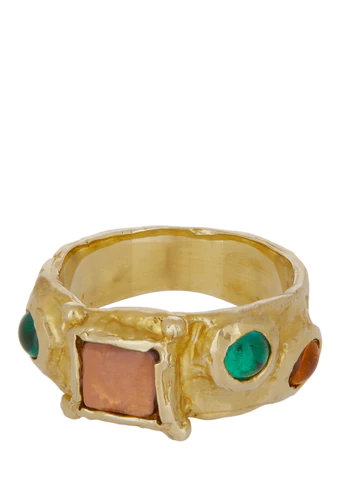 Material: Brass Pictured with Mondo Mondo Suede Ring with Blue, Orange, and Pink Glass. Made in Los Angeles.