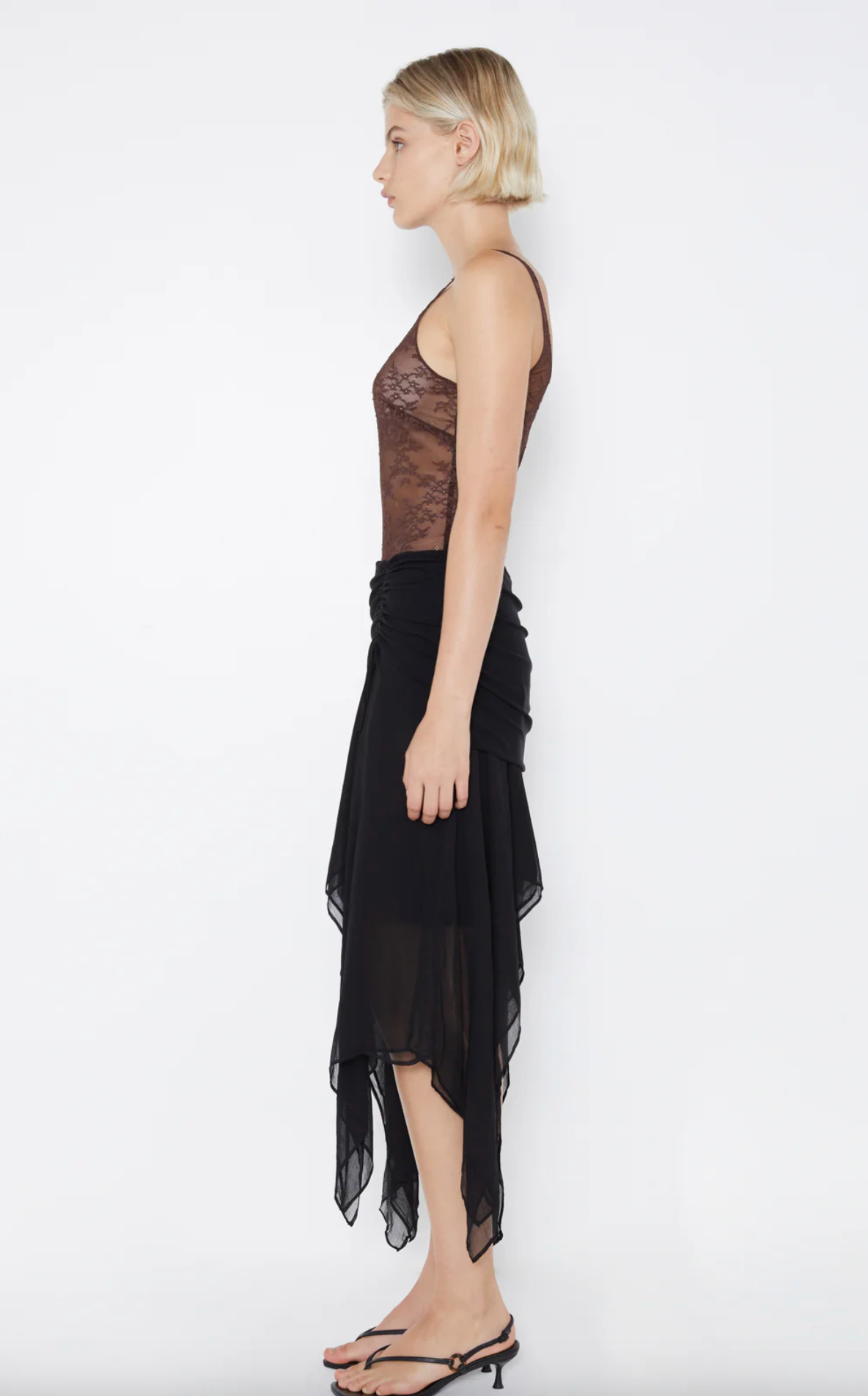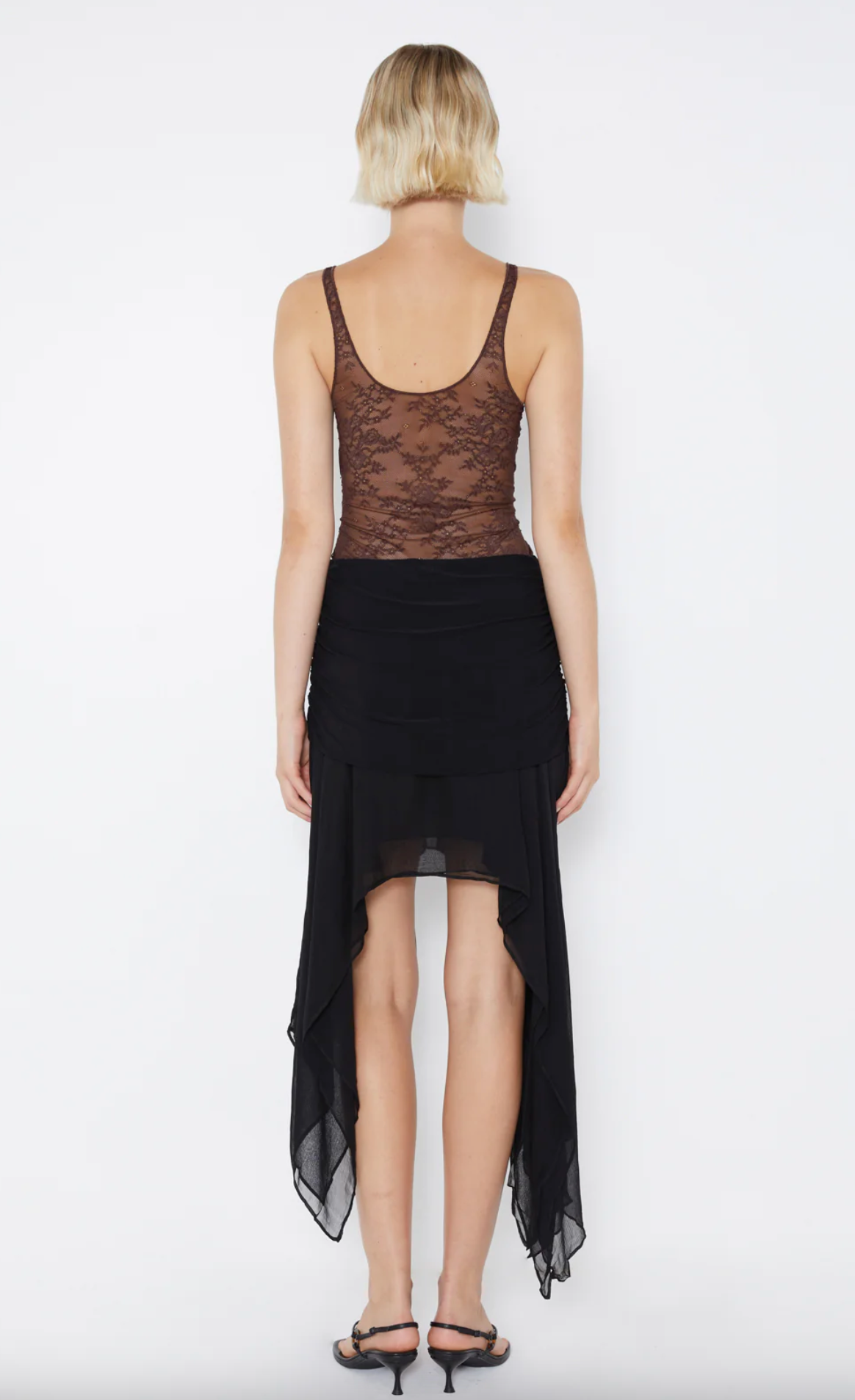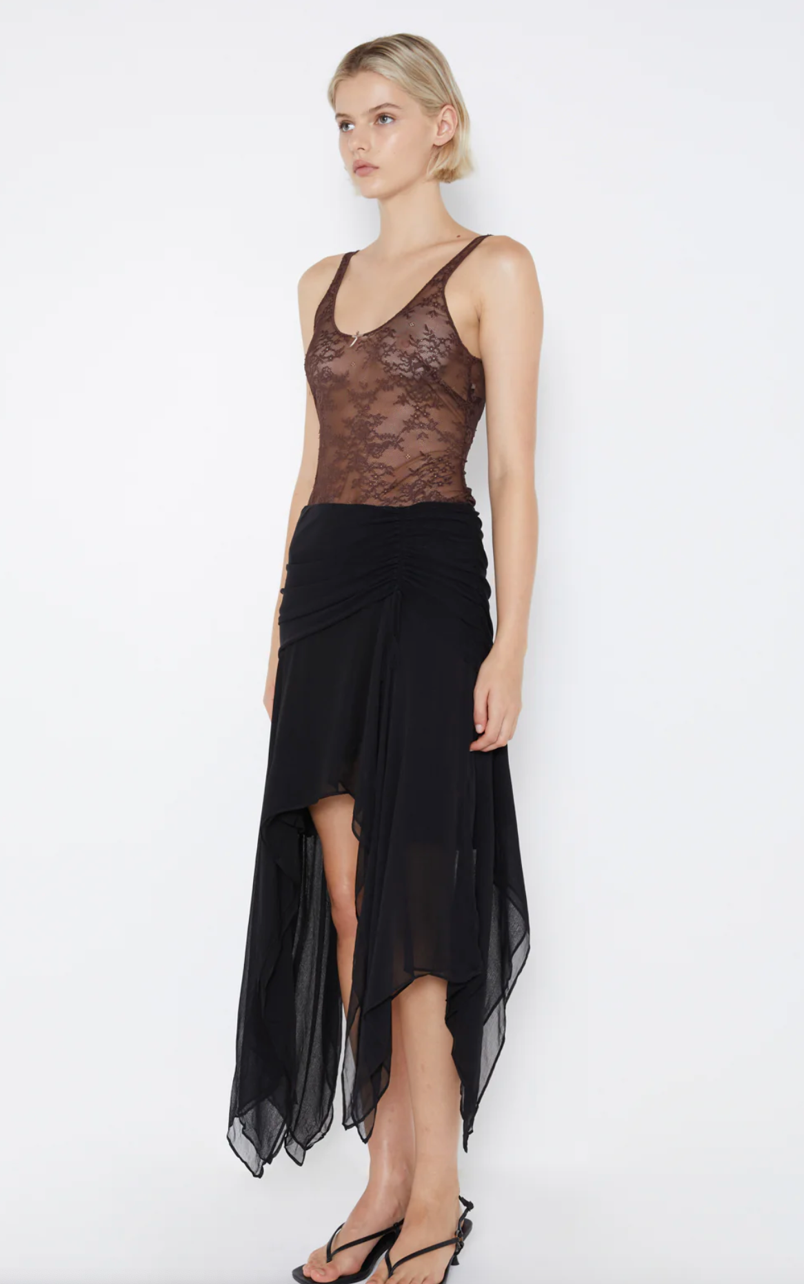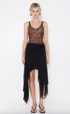 The BEC + BRIDGE Adonia Tank is a feminine style crafted from a delicate stretch lace fabric. The tank features a scoop front and back neckline, bust darks for shaping and a statement contrast bow at the centre front.