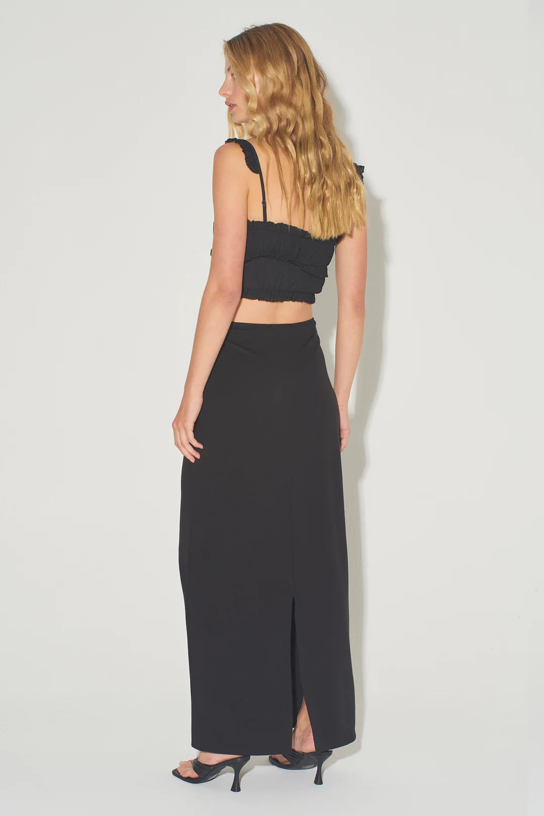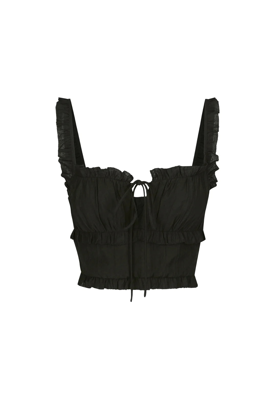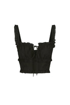 The Baby in Black is a gorgeous feminine style crop top with ruffled trimming. Features include a seperate bust panel and fitted waist design to fully accentuate the figure, a tie up front, invisible zipper for ease and adjustable straps for the perfect fit. With volume and tucks through the top, this crop is perfect for any occasion!
