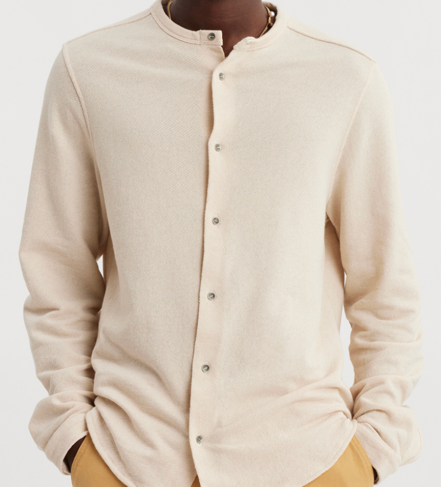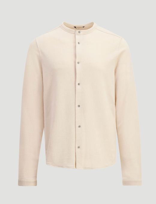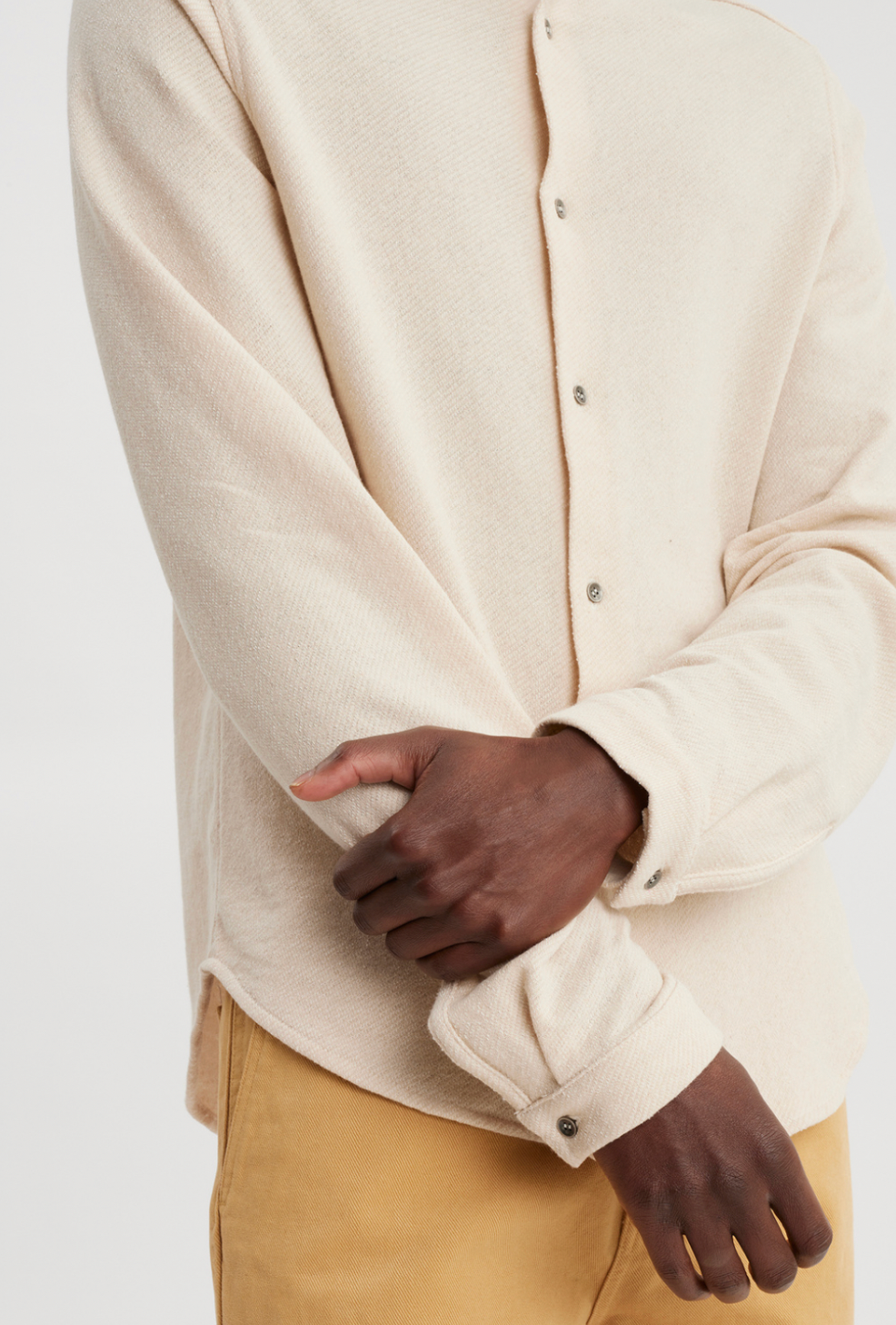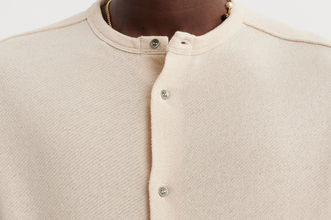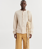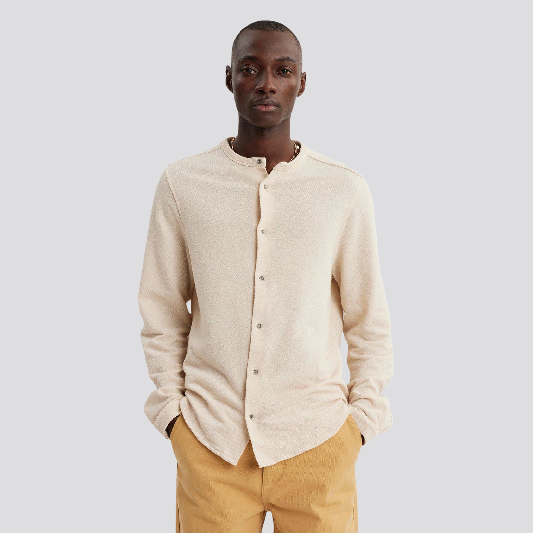 The Faded Buttoned Henley by Holzweiler is a stylish and sustainable shirt crafted from 100% recycled cotton. It features front buttoning, a back yoke, and buttoned cuffs with slit details. This shirt is available in size XXS and in the color beige.