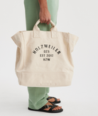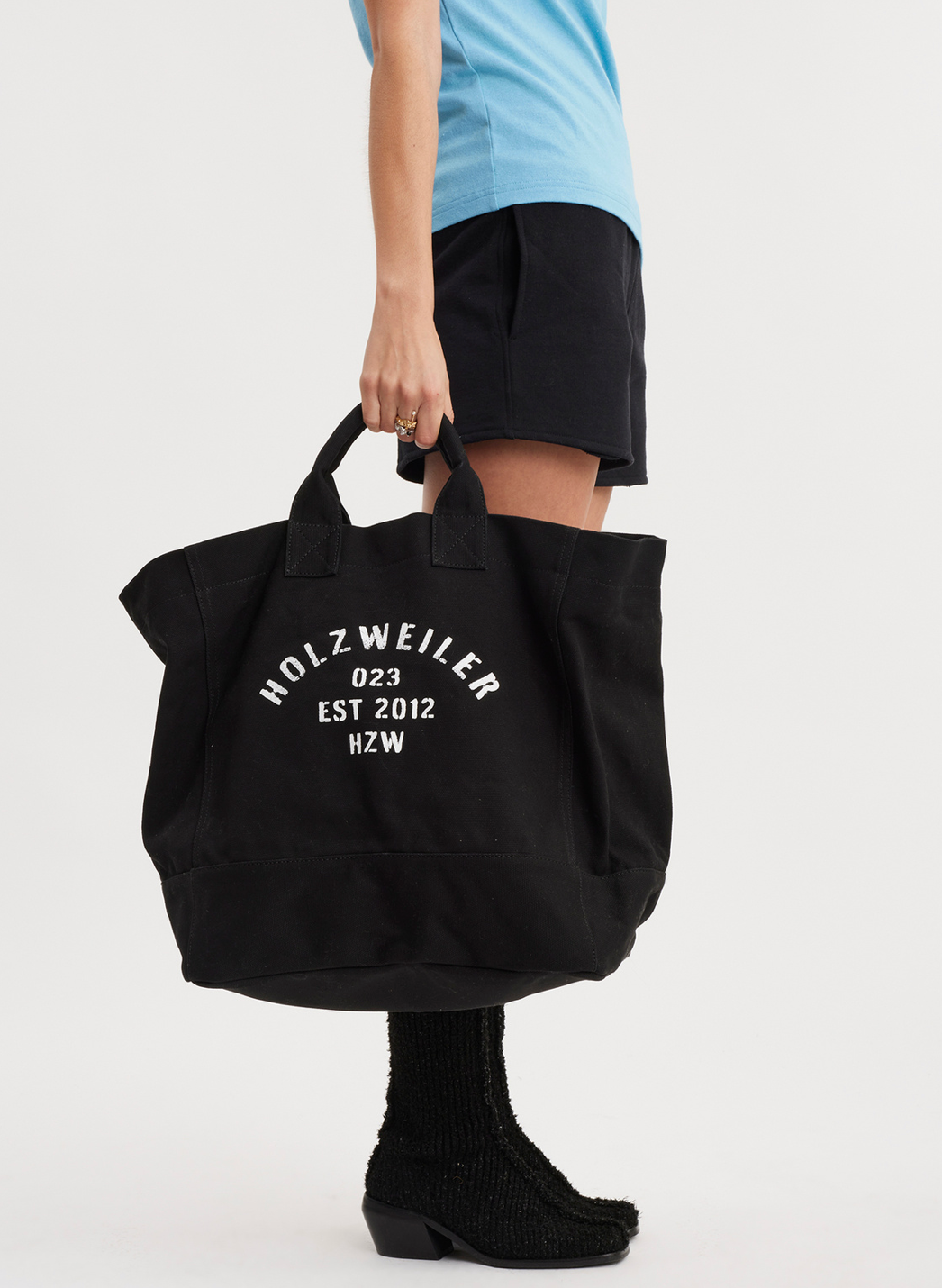 Introducing the Nordkapp shopper bag from Holzweiler. This stylish and spacious bag is crafted from durable cotton canvas and features a black logo print, two half-round handles, a detachable and adjustable shoulder strap, and silver-tone metal hardware. The Nordkapp also has one internal compartment with a zip pocket, making it the perfect choice for everyday use.