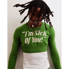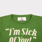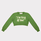 The ‘I’m Sick of You’ cropped knit in green & white from the ‘I’m Sick Of You!’ collection.