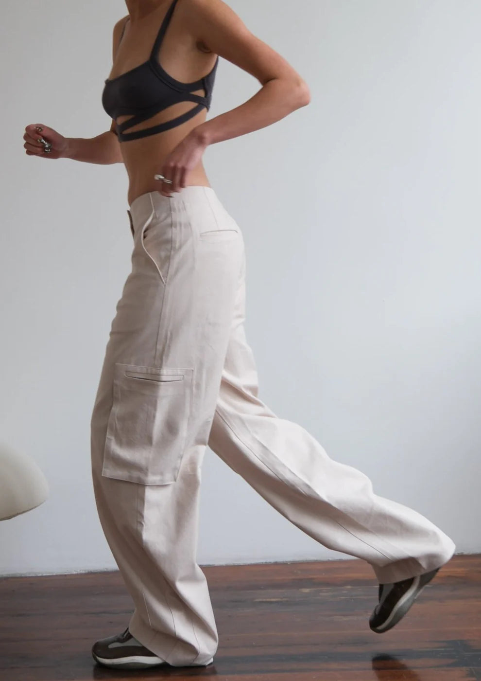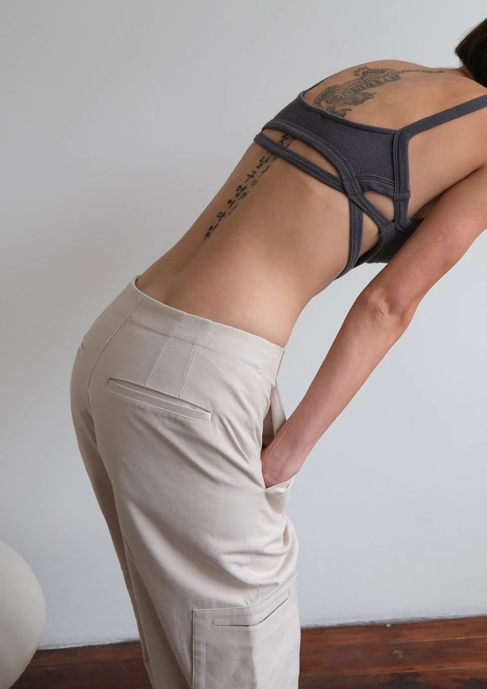The Jinu, a slightly tapered classic cargo pant with a hidden zip closure and welt pockets.