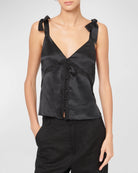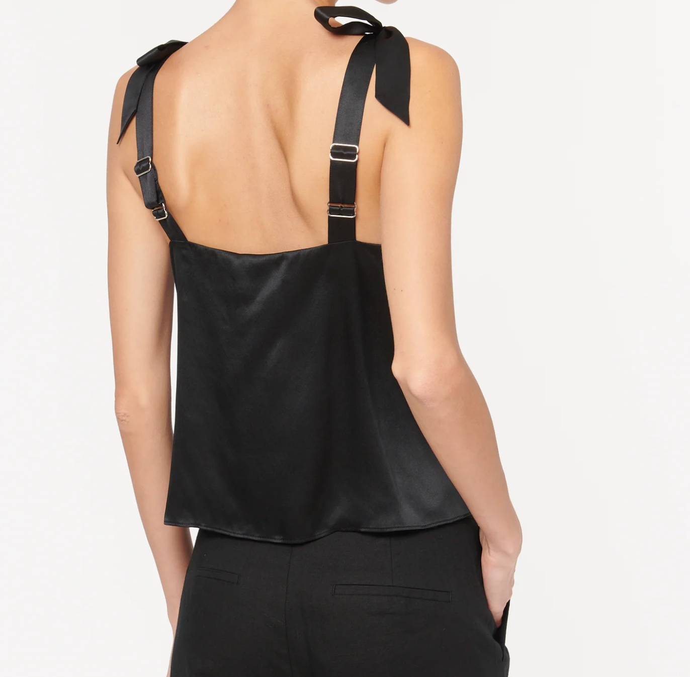 Looking for a versatile and stylish cami? Look no further than the Kenz! Thissilk sandwash charmeuse cami features a v-neck with stationary bow tie straps and top applied lace at the underbust and center front. It has adjustable straps for a tailored fit, slits at the side seam and is bra-friendly. The Kenz is fully lined.