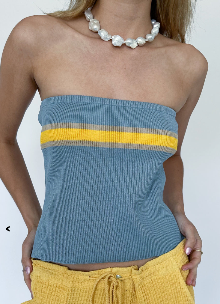 The knit tube is a relaxed strapless top with three unique stripes. Built with an elastic top for an easy, relaxed fit, this top is perfect for a day out or to pair with the Pop Shirt and Waffle Painter Pant. Made with love in Los Angeles.
