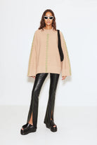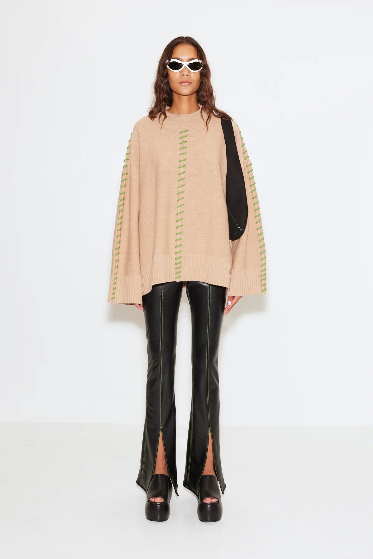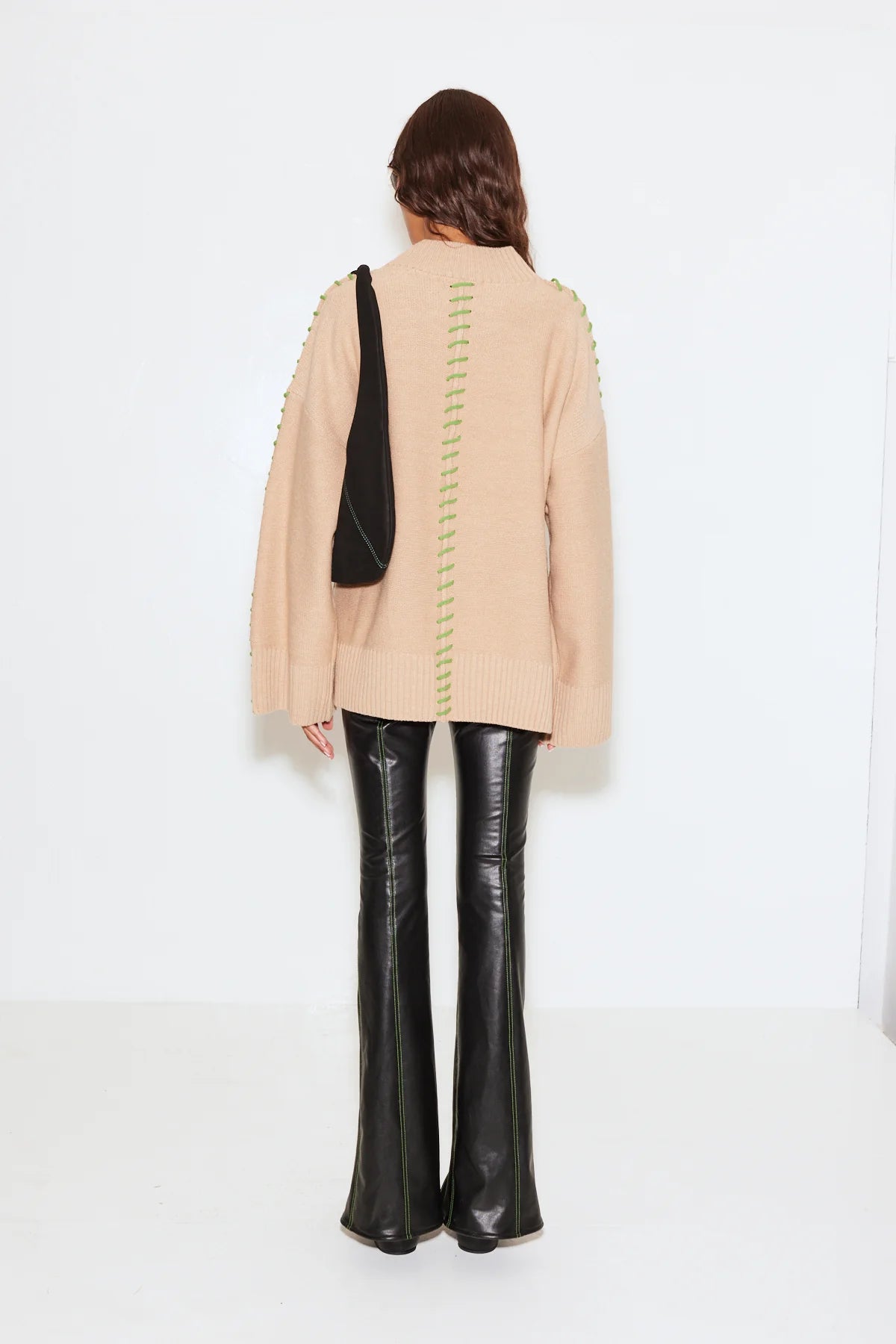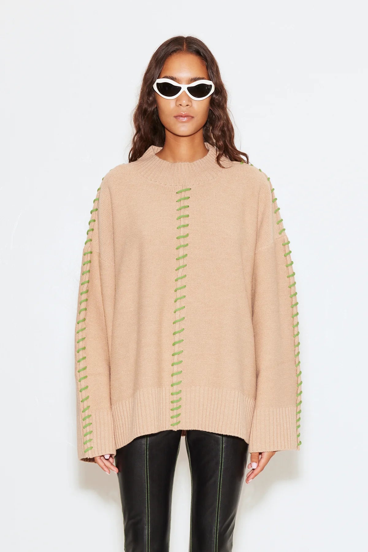 OVERSIZED MERINO BLEND KNIT WITH ACCENT STITCHING.