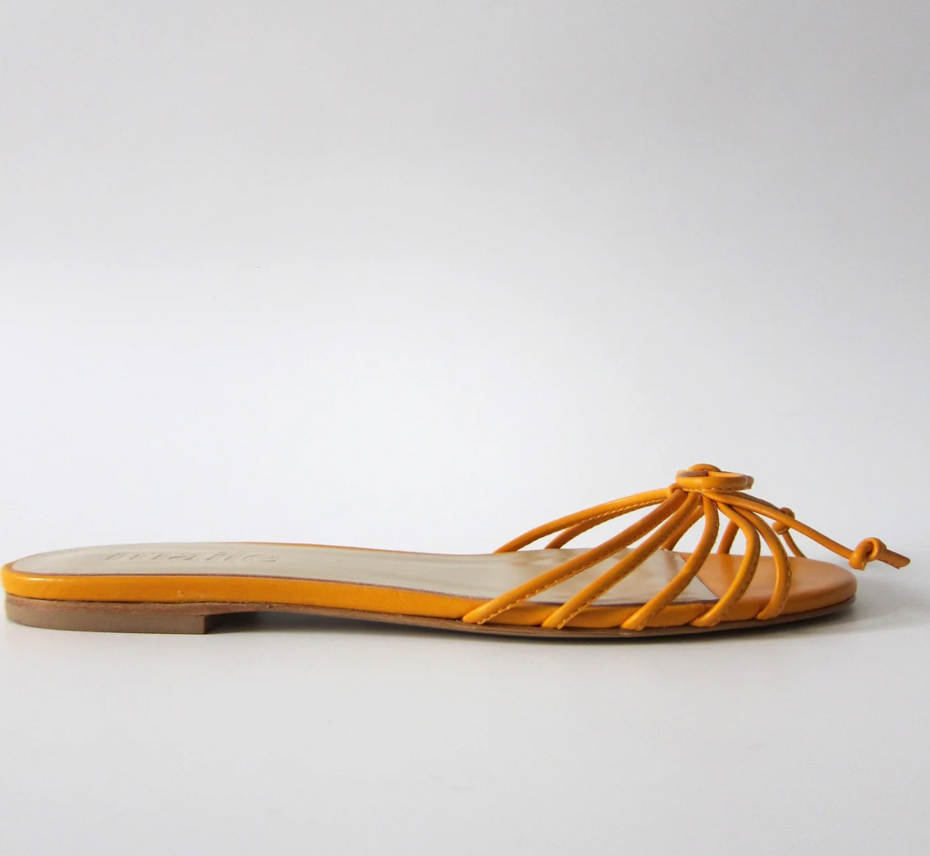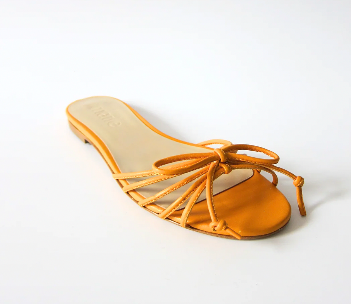The perfect shoe for a summer getaway, these slides are made with luxurious nappa leather and a soft leather footbed. They have a 5mm heel and slip on easily, making them perfect for a packing light. A signature flat sandal with a flirty mignon bow to top it off.