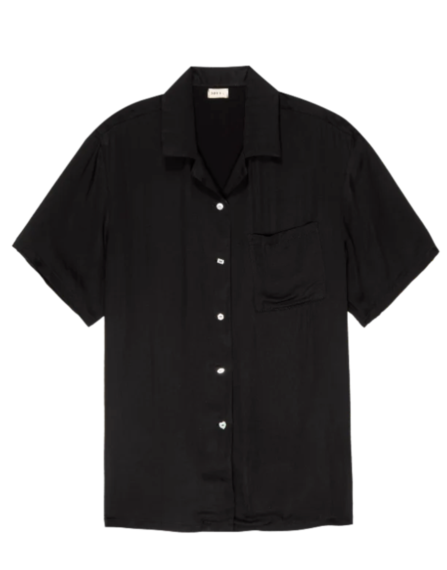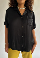 This is the silky short sleeve shirt that you'll want to wear all season long. It's made from a luxurious fabric that feels cool and smooth against your skin, and each button is a different shape, making it a truly unique piece. You can dress it up with a pair of trousers or dress it down with denim - either way, it's sure to make a statement.