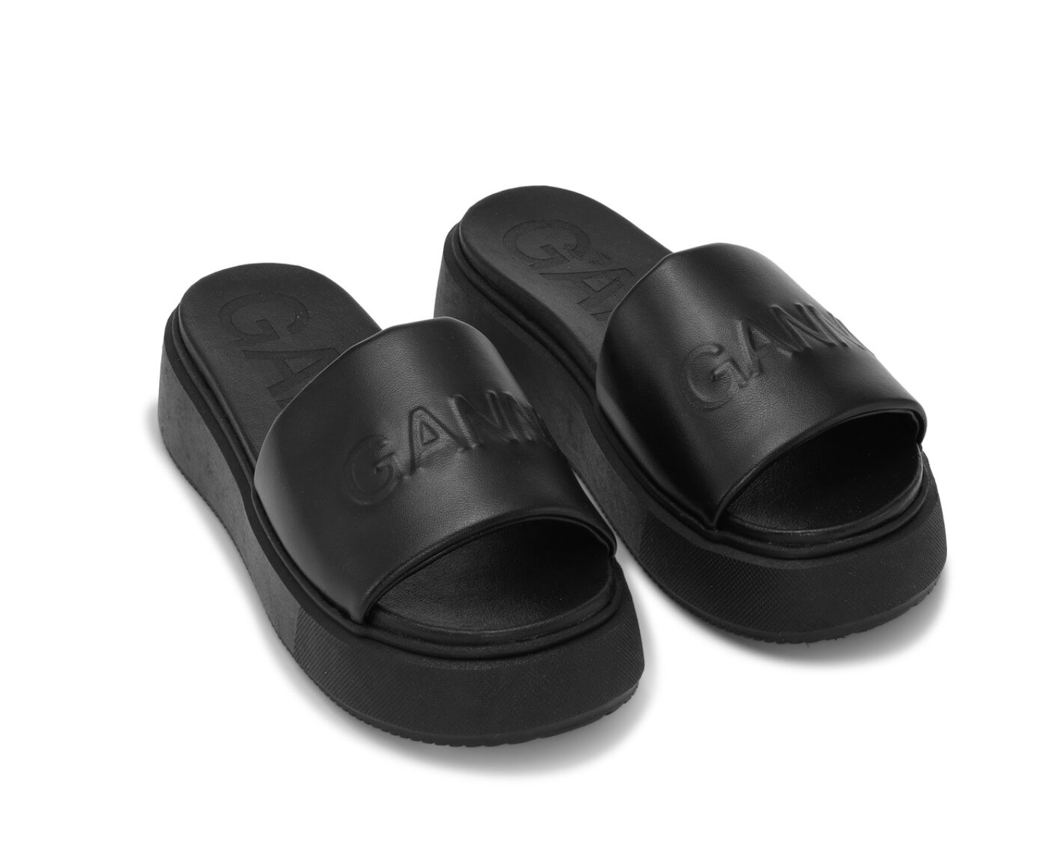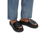 Vegea faux-leather slip-on sandals in black are perfect for any summer outfit. A foam rubber platform midsole and treaded rubber outsole provide both comfort and style. The H1.75 inch platform gives you a little extra height without sacrificing stability.