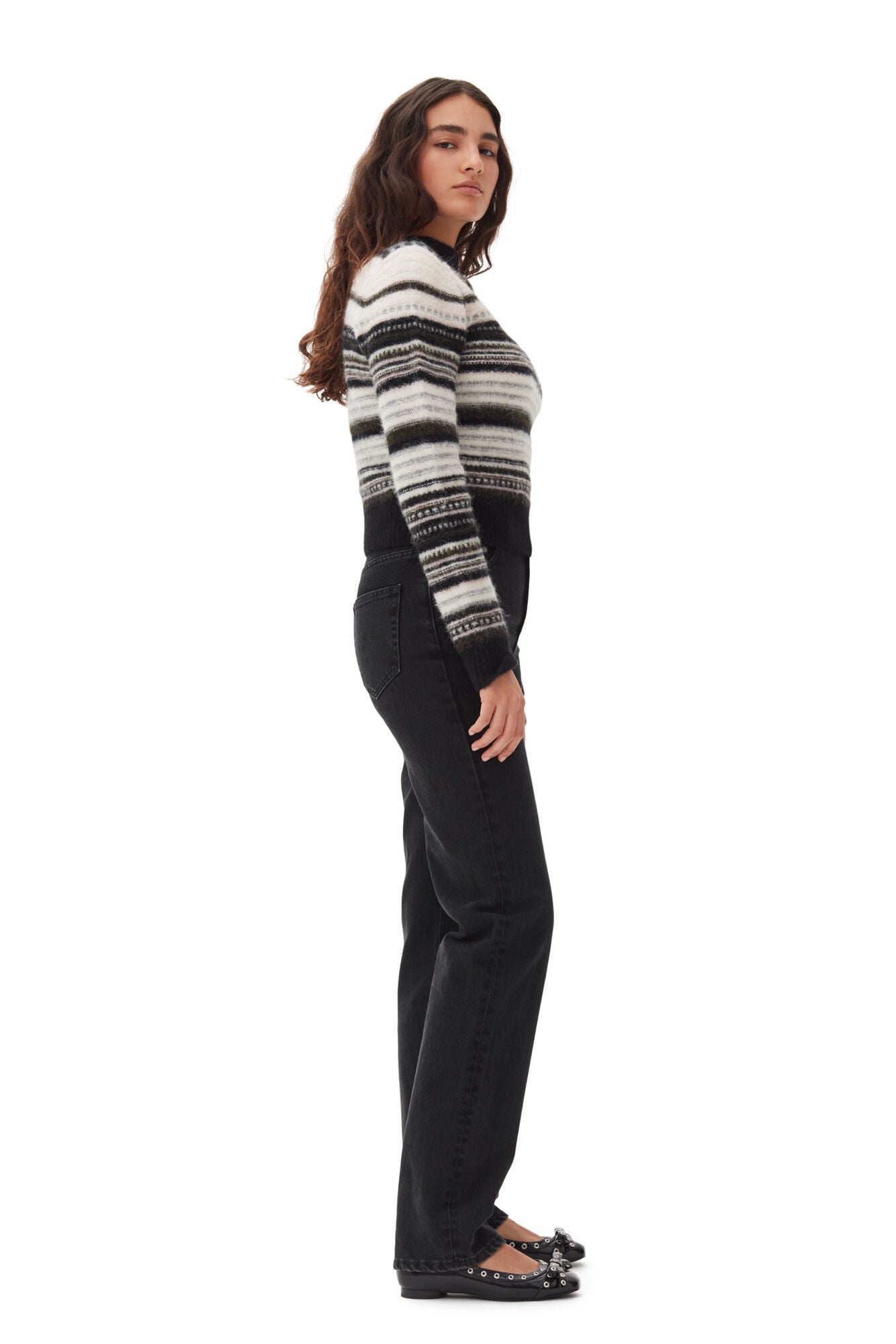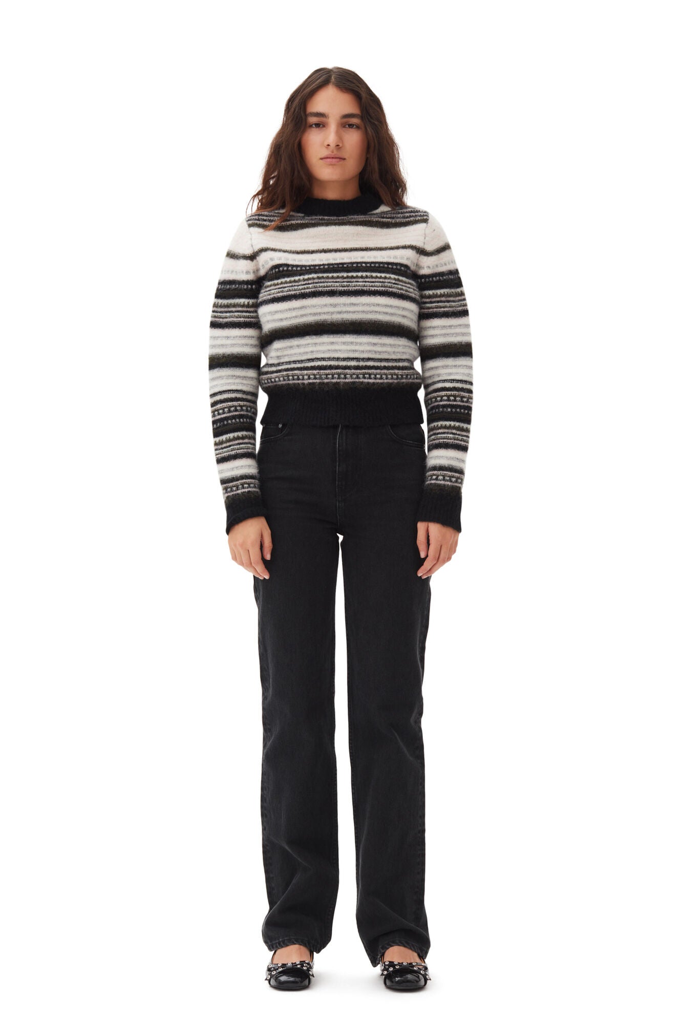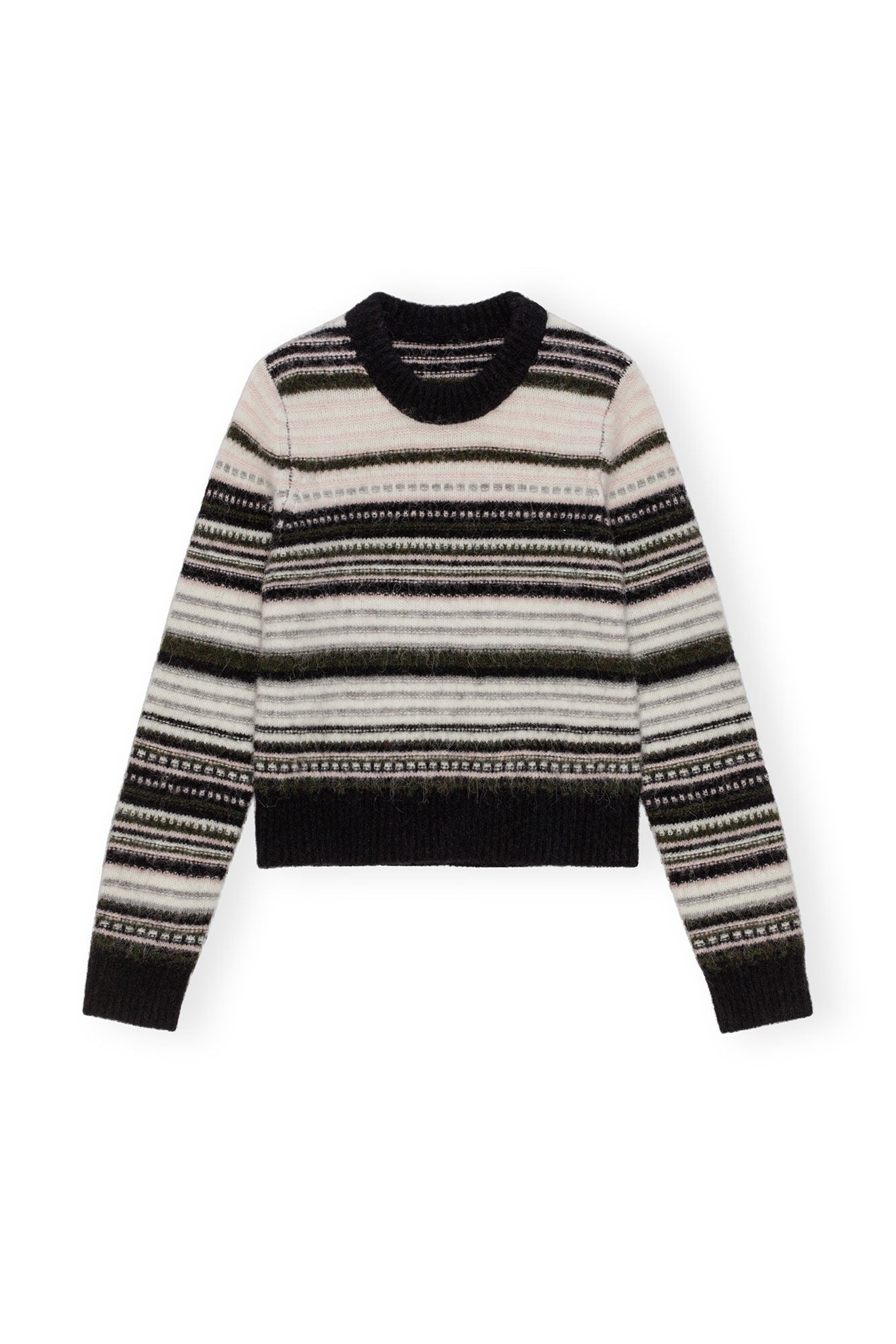 This Striped O-neck Sweater features a round neckline, long sleeves and ribbed edges.
