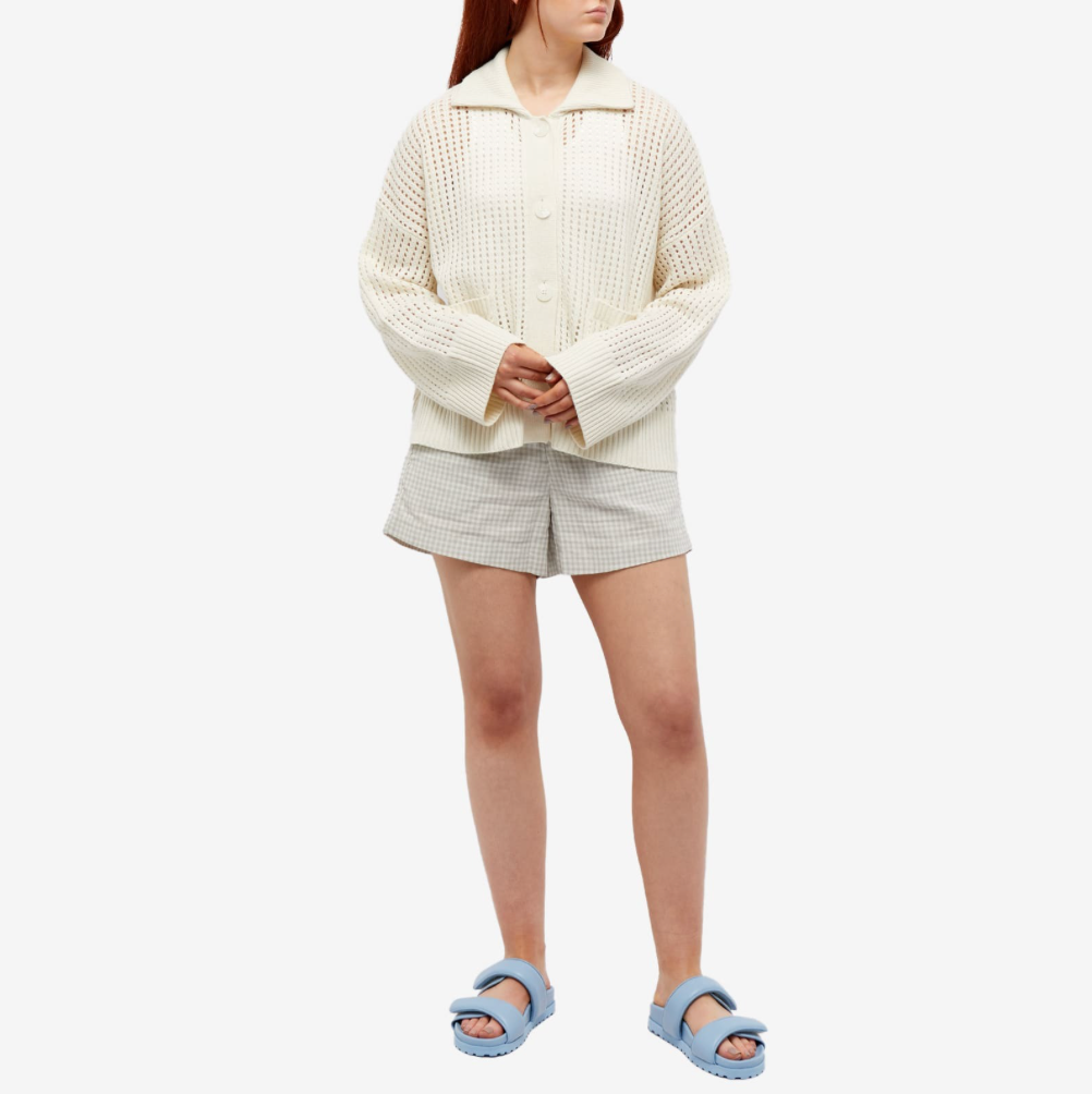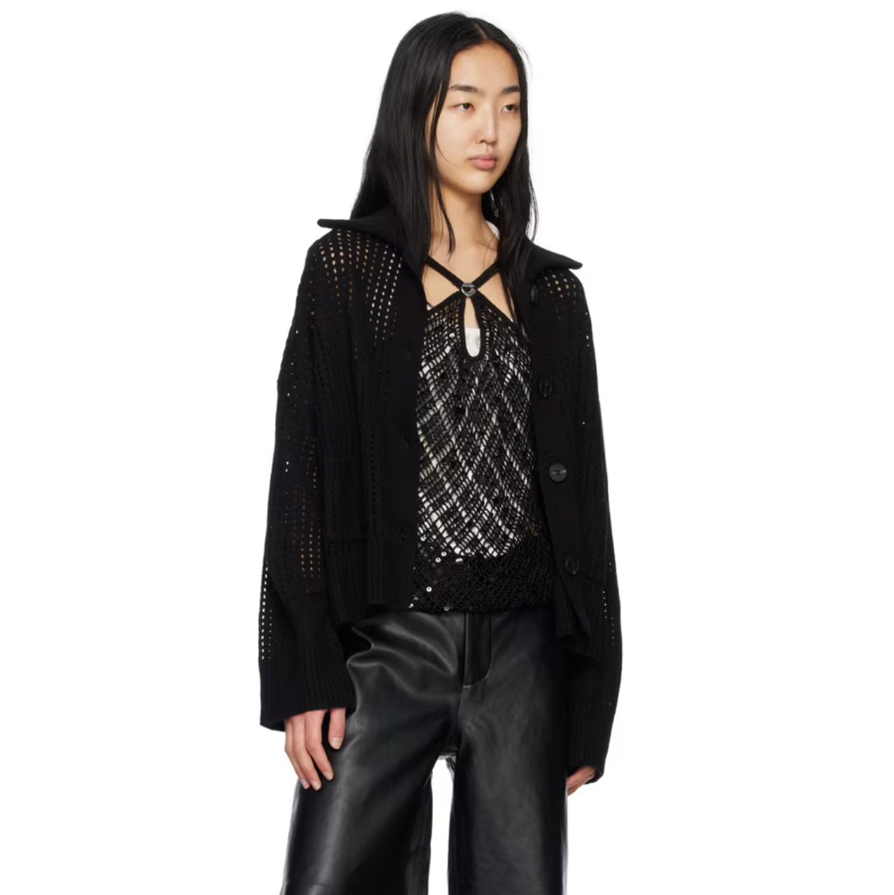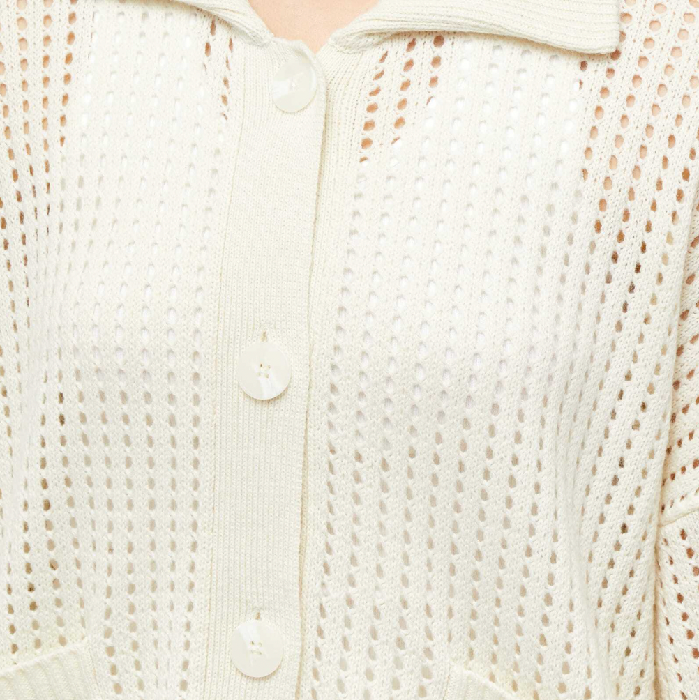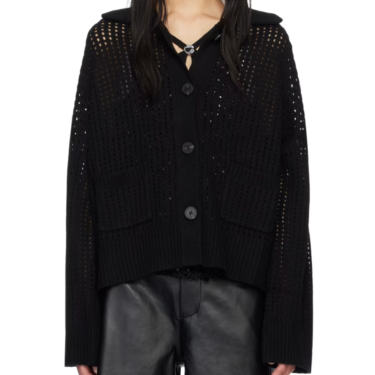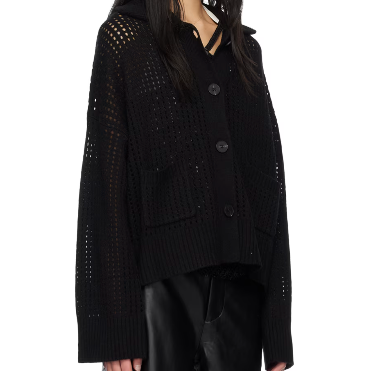 The Tired Crochet Cardigan by Holzweiler is detailed with oversized sleeves, front pockets, a crochet-knitted body and ribbed details.