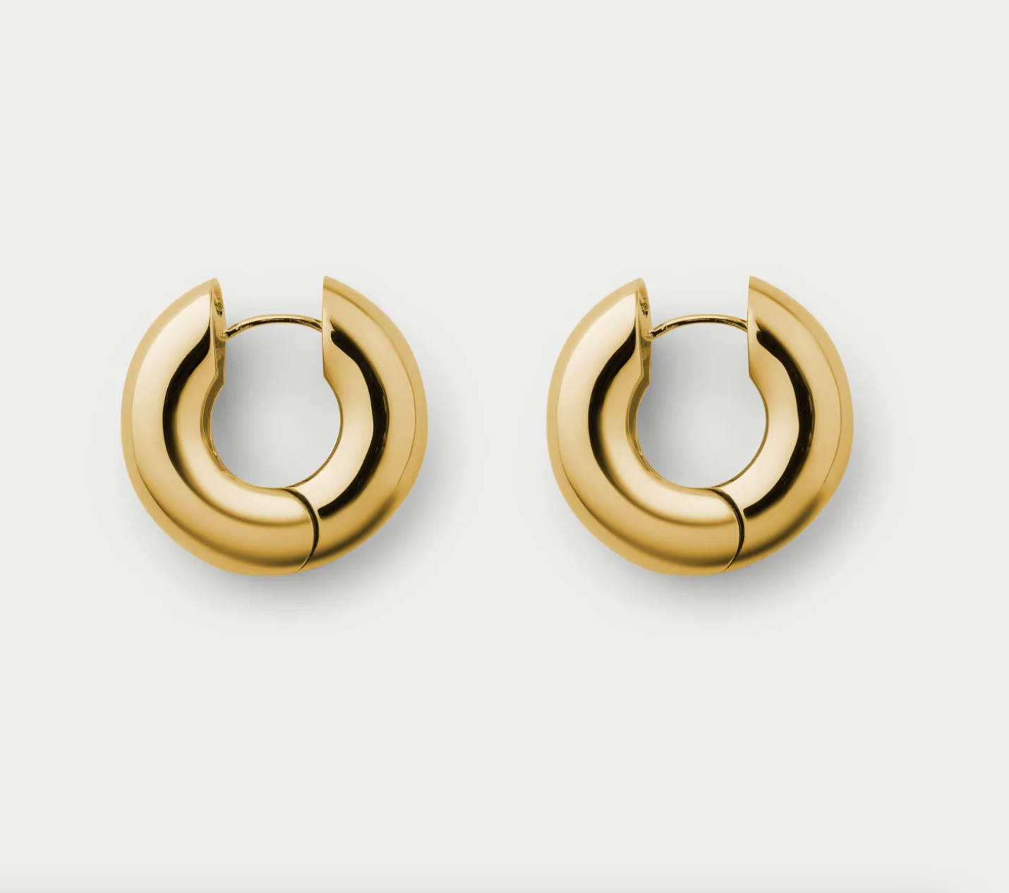 Our Devon hoop earrings feature the same hinge and lock design as our Mini Devon earrings, now in a larger, bolder size. These extra lightweight and heavily gold-plated earrings can be worn daily, without weighing you down, or fear of tarnishing.
