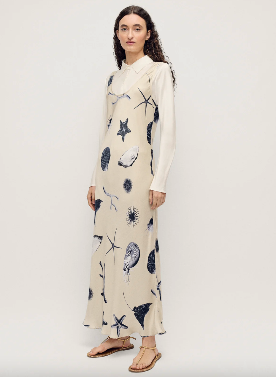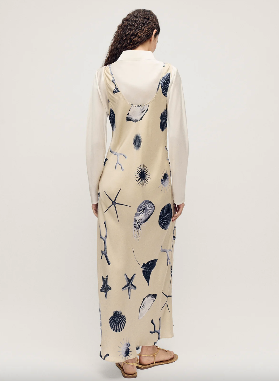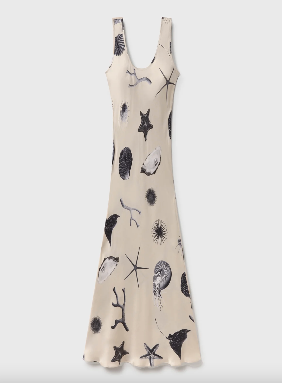 Silk Laundry Scoop Neck Dress, made from 100% silk. Cut on the bias, sleeveless with a scoop neckline.