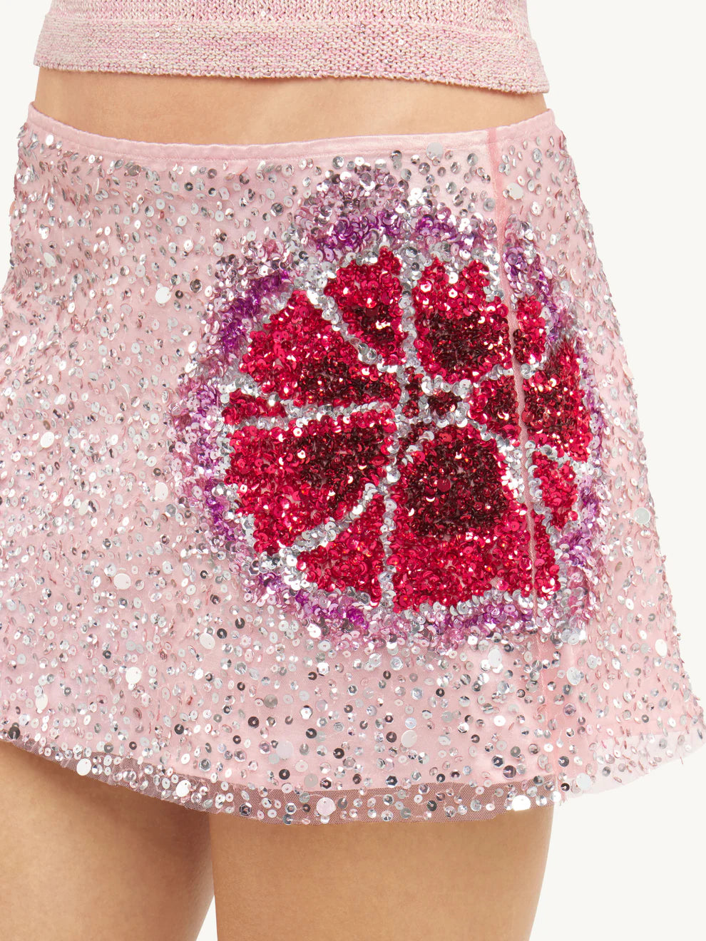 Bloom Hand Beaded Mini Skirt Garden Rose