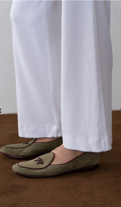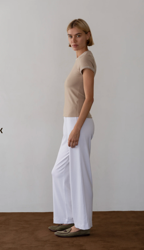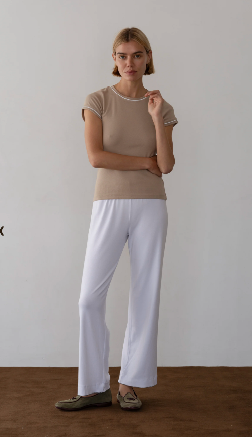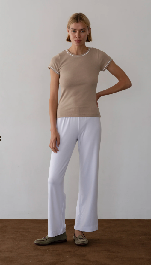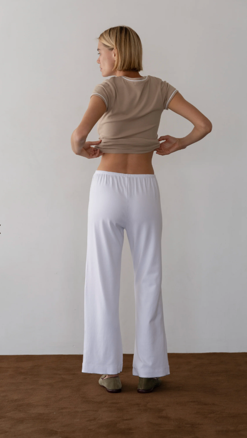 Baby Rib Scallop Contrast Pant Powder