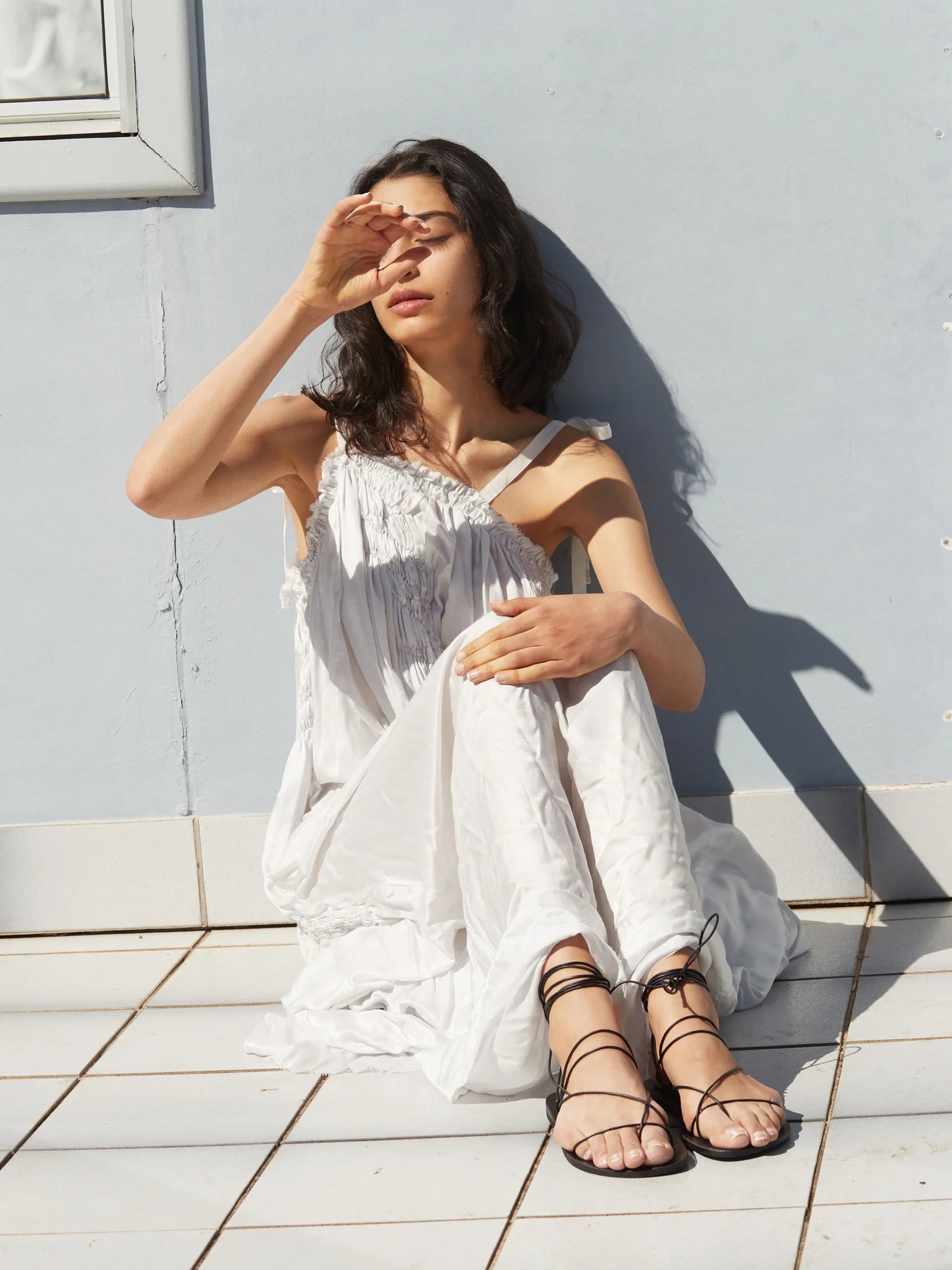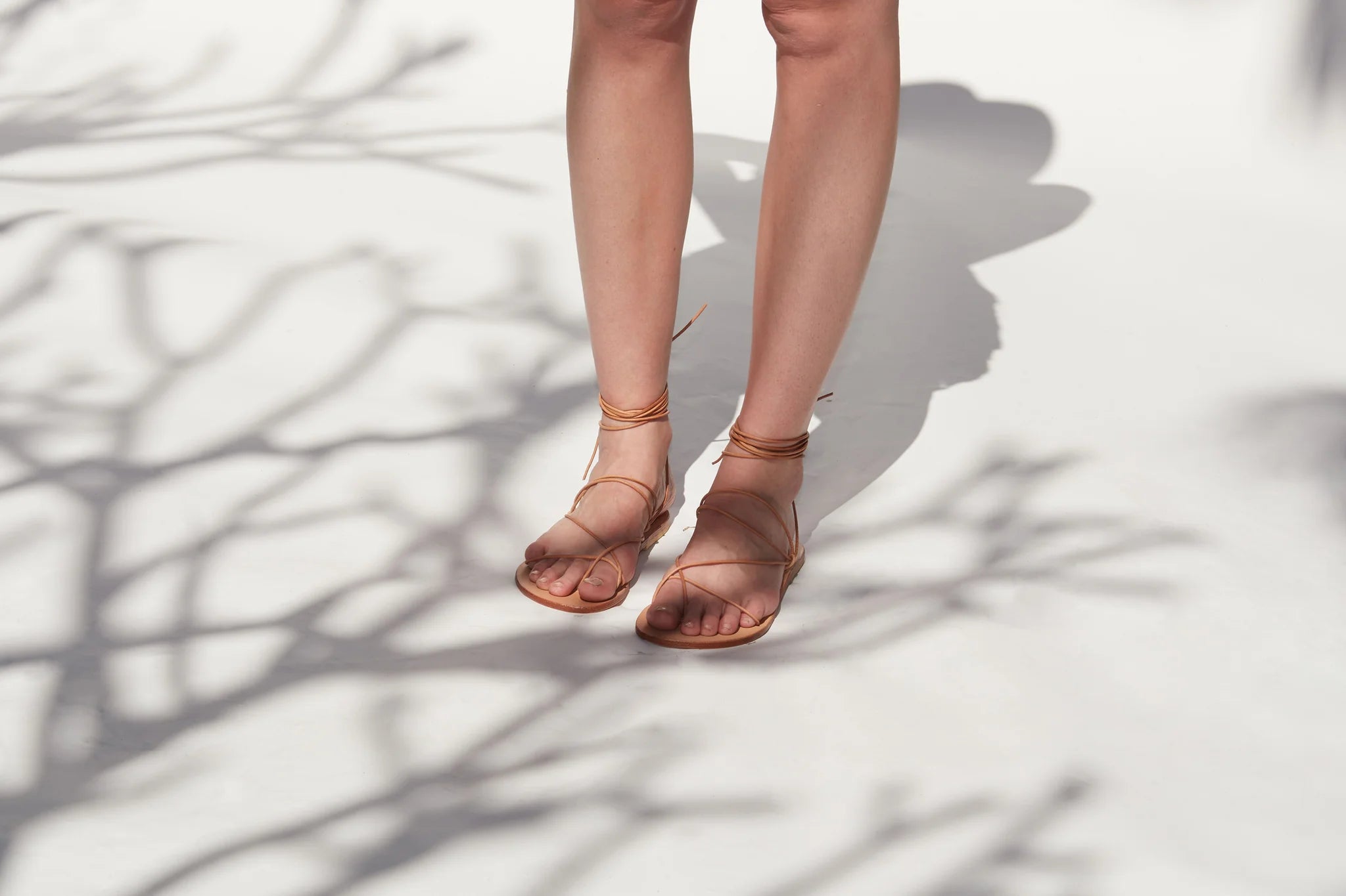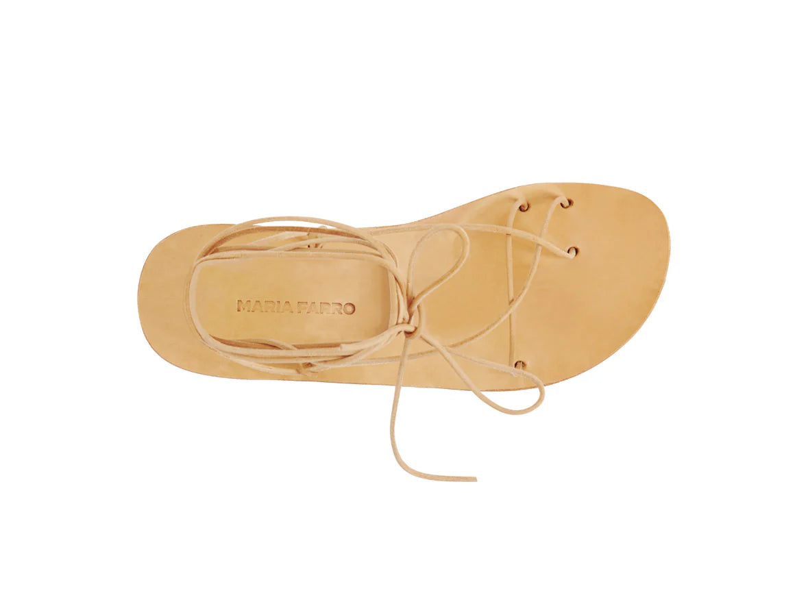 MARIA FARRO sandals are handmade with natural tan leather. The AELIA sandals are the perfect day-to-night sandal style. These wrap-style sandals are easy to put on and wear all day.