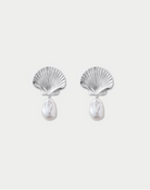A nod to seaside classics. These earrings pair a silver-plated scallop shell with a resin baroque pearl drop for a look that feels both nostalgic and polished. Lightweight enough for all-day wear.