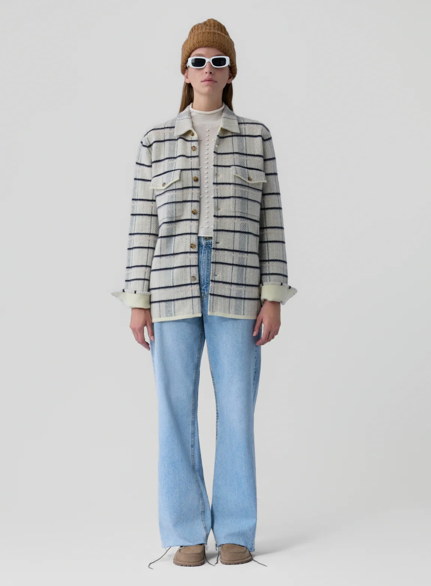 A modern take on classic Western workwear, the Plaid Work Shirt is crafted from 100% medium-weight cashmere with an intentionally oversized fit. Its colorful plaid pattern and soft texture make it the ultimate everyday layer — worn solo or over knits.