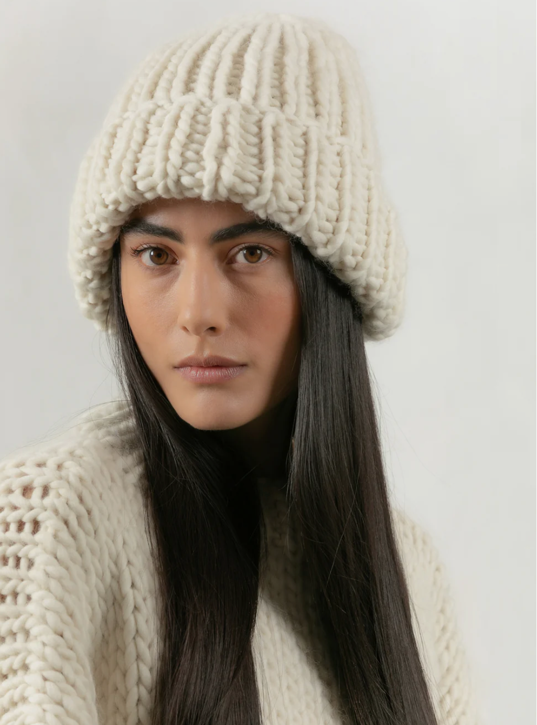 MADE IN PERU FROM THE DISTINCTLY CHUNKY WOOL THE BRAND IS KNOWN FOR, THE RIBBLE BEANIE IS A DIRECTIONAL FINISH TOUCH FOR COLD-WEATHER OUTFITS. SPUN FROM 100% WOOL WITH A SOFT HANDLE IN A FISHERMAN’S RIB STITCH, THIS OVERSIZED BEANIE CREATES A FLATTERING MODERN SILHOUETTE WHILE KEEPING YOU WARM.