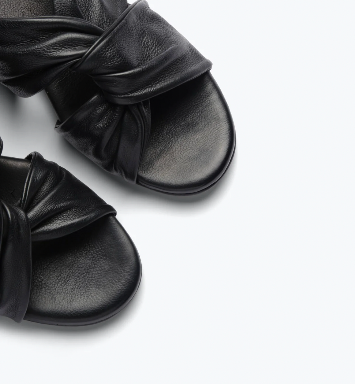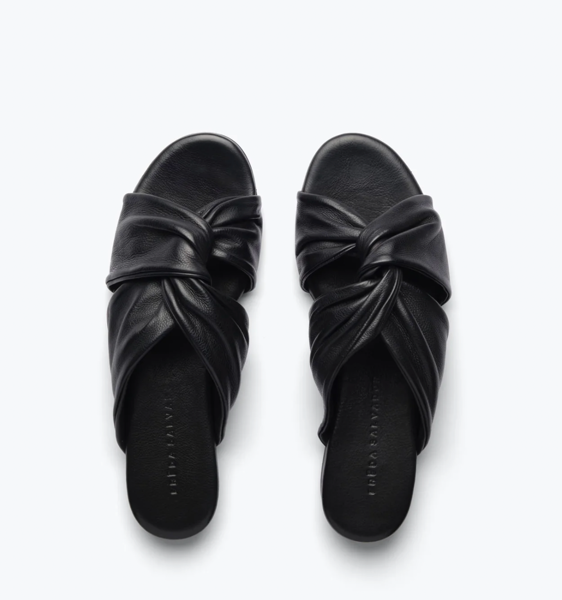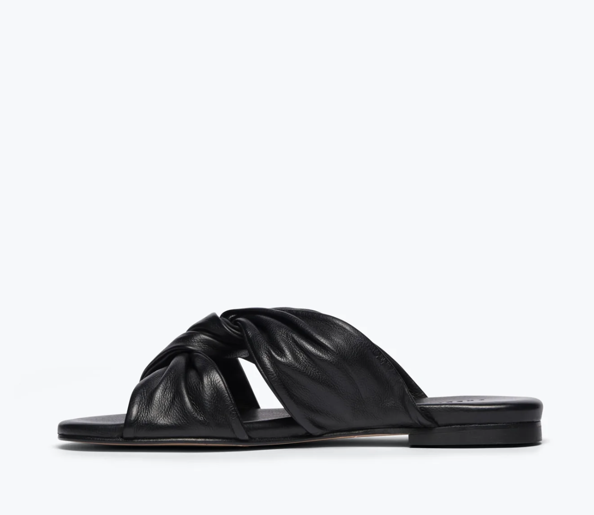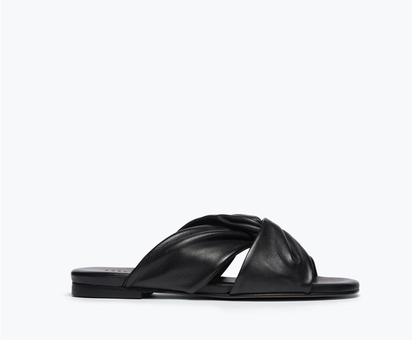 The classic slide with a twist. Made by hand with our signature black vegetable calf, the CARLOTA has a feminine round toe, padded footbed and modern twisted band. A true everyday essential, we love this style with everything from denim to a silk slip.