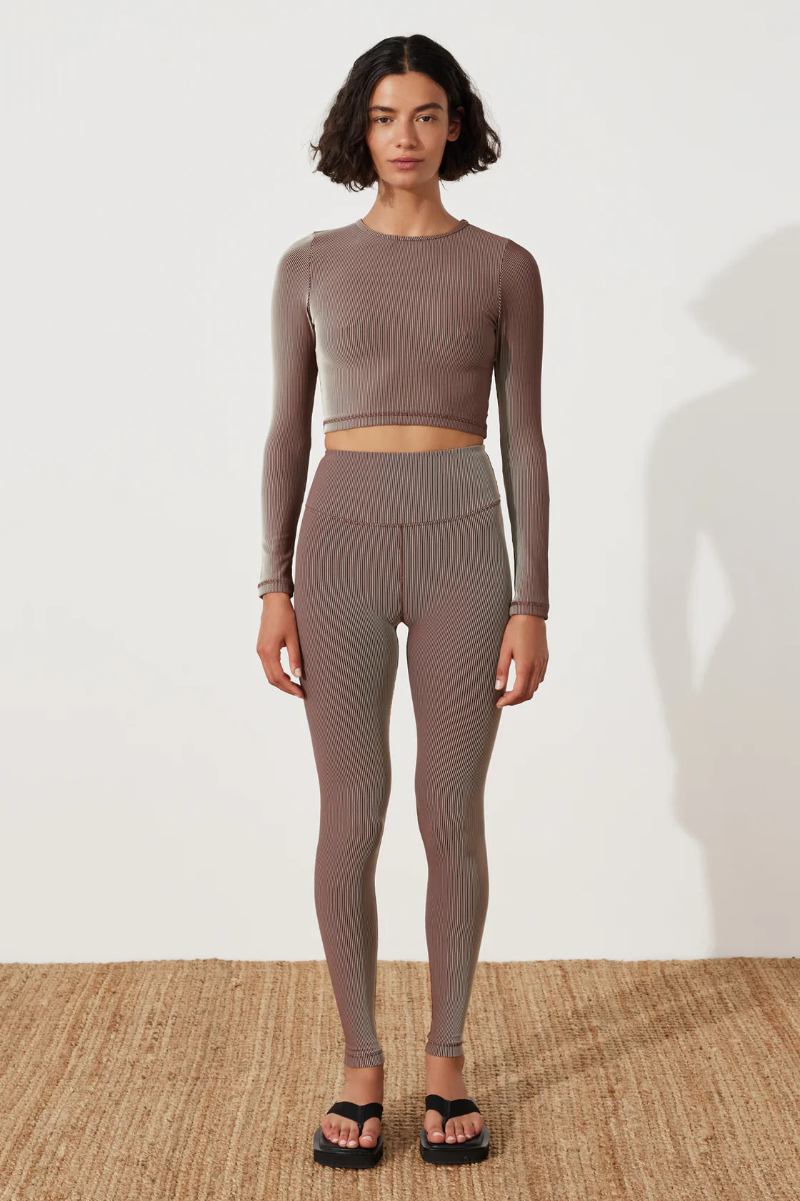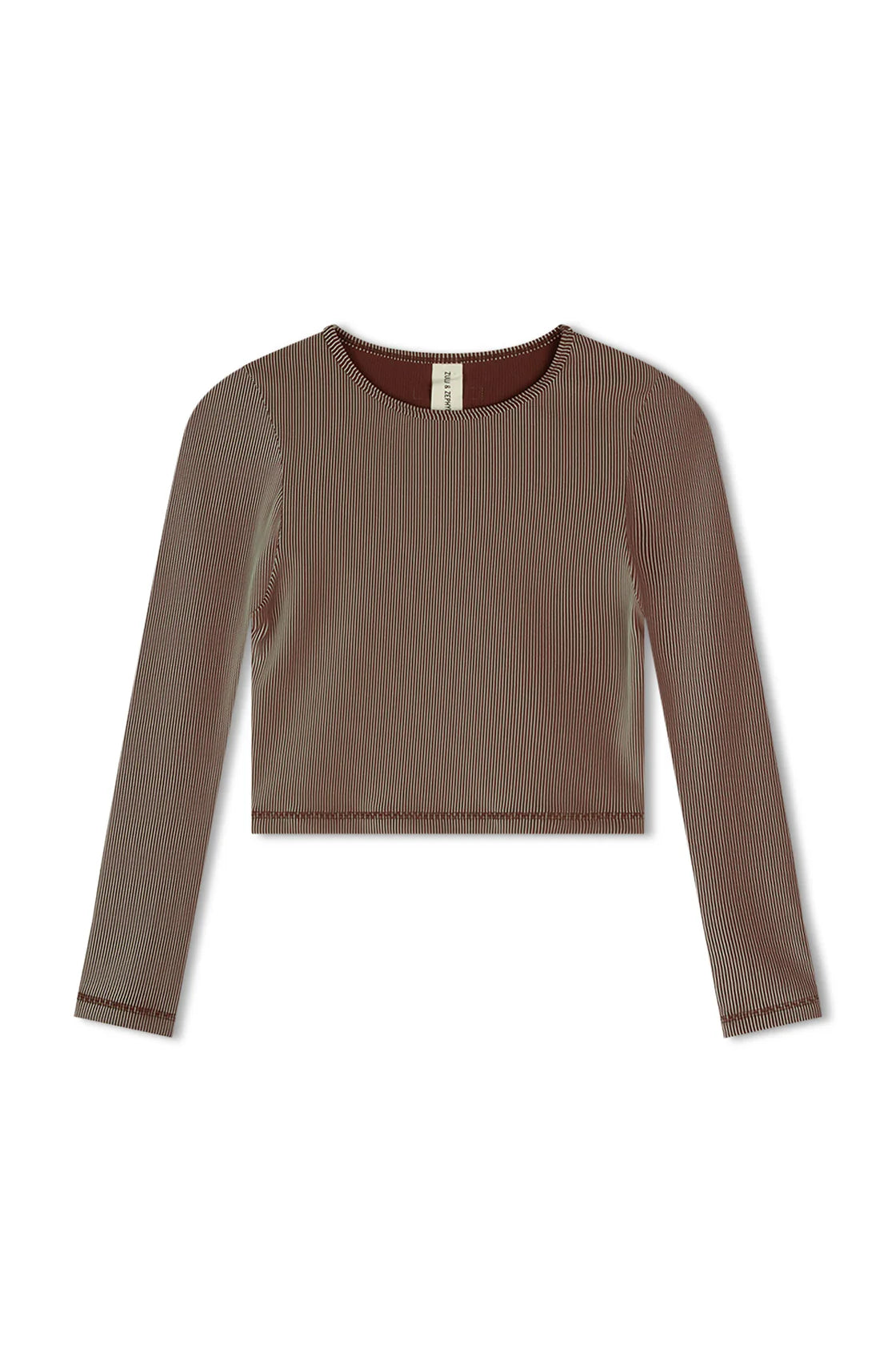 The Stripe Rib Top - Chocolate by Zulu & Zephyr features a scoop neckline, with long sleeves in a cropped style. The two-tone ribbed crop is designed for high-endurance activity, water sports, or simply as luxury everyday athleisure wear, and forms part of the new ZZ Sport range. Pair yours with the Rib Short to wear this functional piece from pilates to lunch.