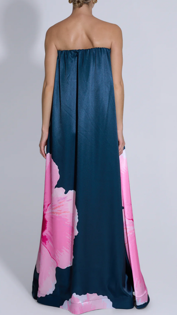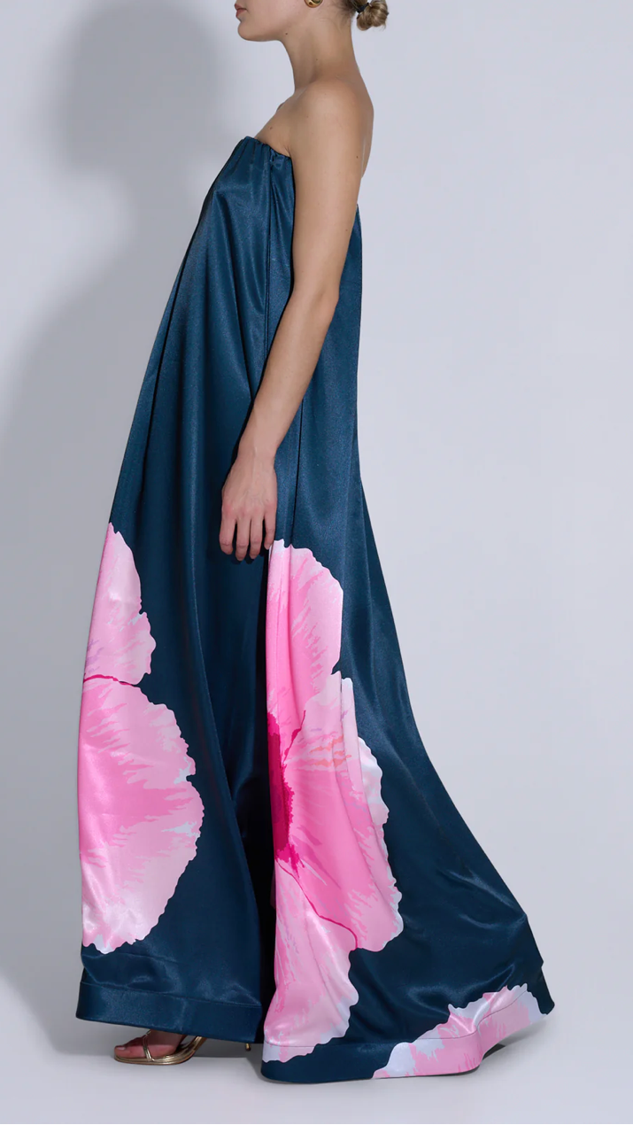 A voluminous dress embodying drama and opulence. Featuring a flattering strapless neckline and designed for a floor grazing length.