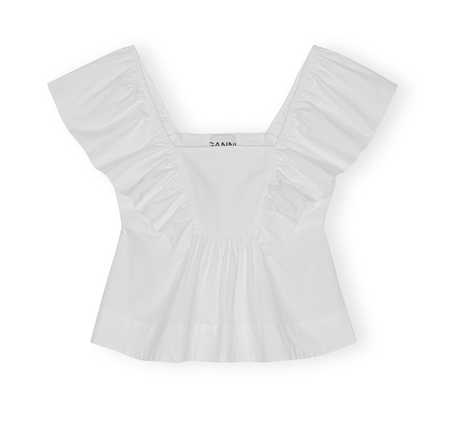 Our Cotton Poplin Ruffle Blouse is made from beautiful organic cotton. The top is designed for a regular fit, and we've added some gorgeous details like a square neckline, a smocked low back, and exaggerated ruffled straps. It's perfect for a sunny day out, or even a special occasion. Our Cotton Poplin Ruffle Blouse comes in size Small.