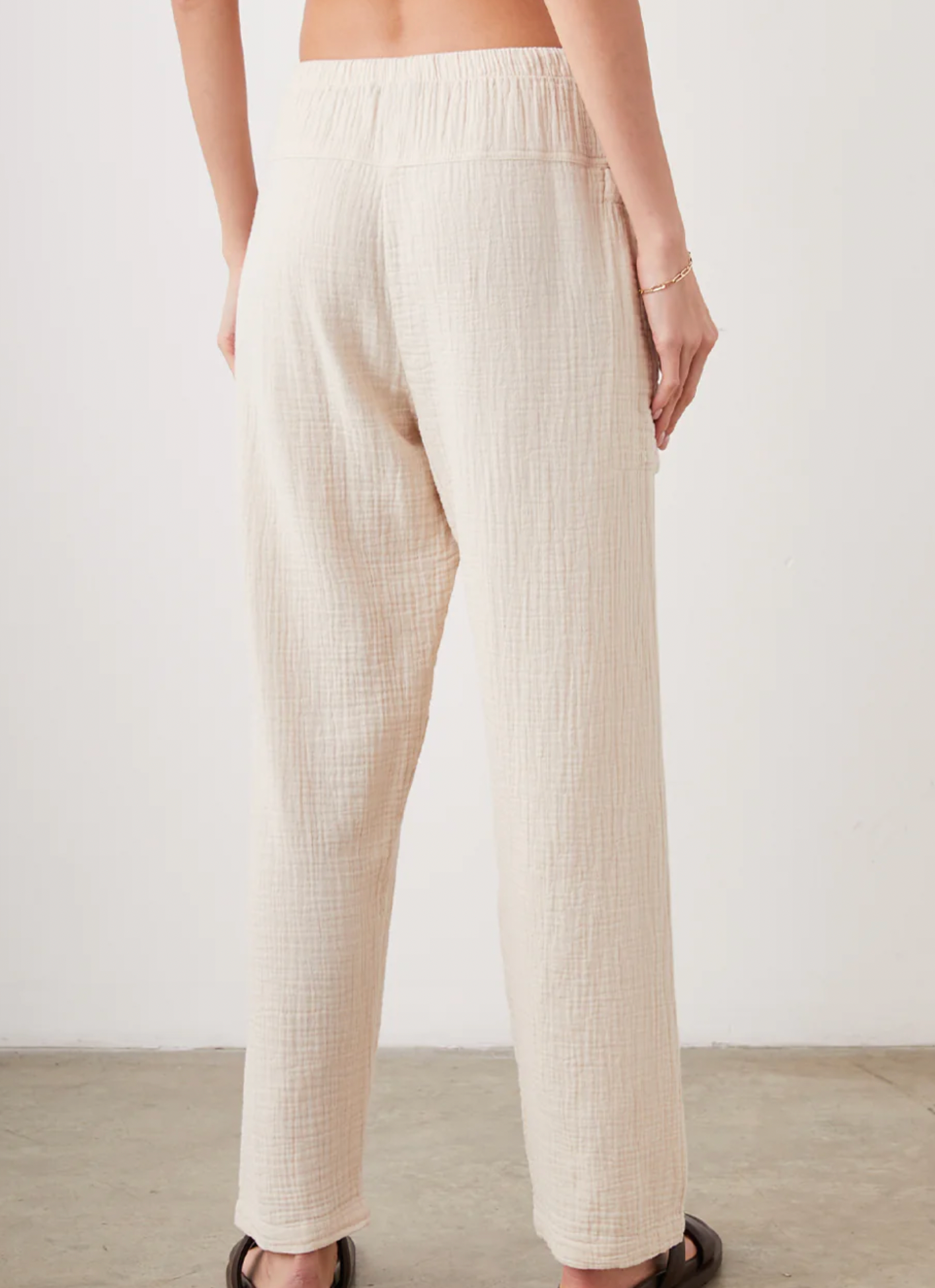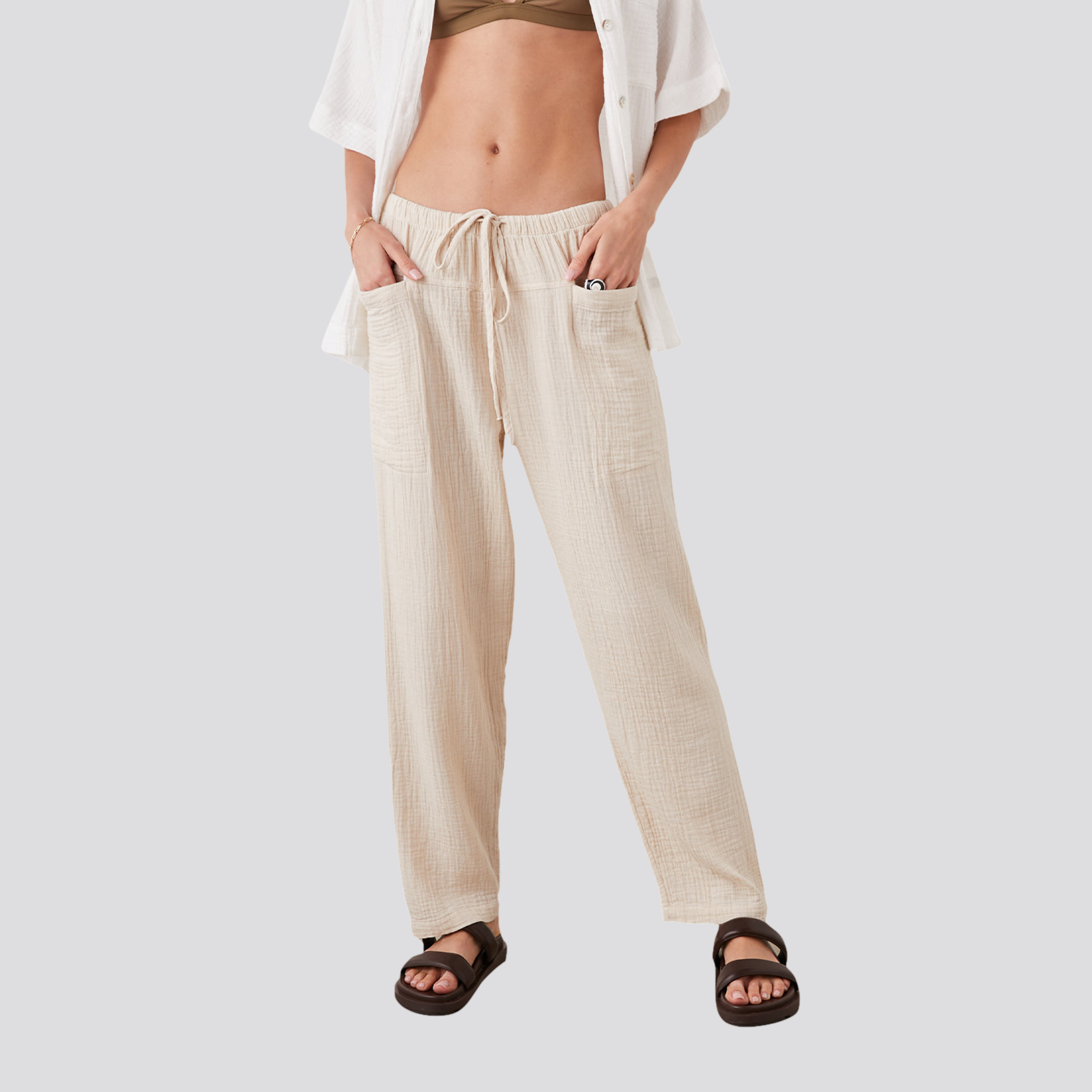 The Darby Pant in flax is made from 100% sustainable cotton, with relaxed side pockets, drawstring waist, and comfortable feel. When building your next warm-weather outfit we love this carefree, easy pant.
